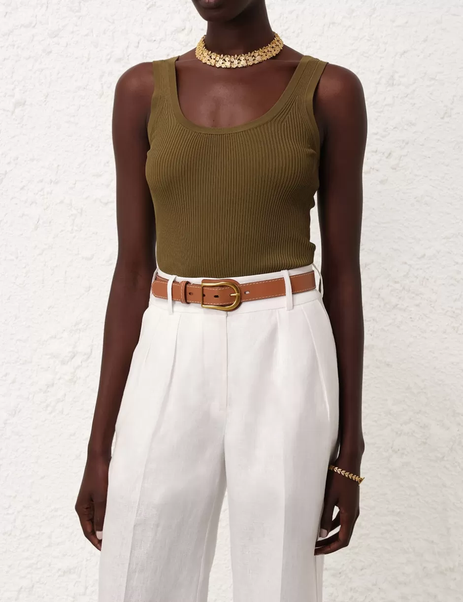 The Buckle Belt 30 in Avalon from our Summer Swim 2024 Collection. A leather belt featuring a twisted gold buckle and cu…
