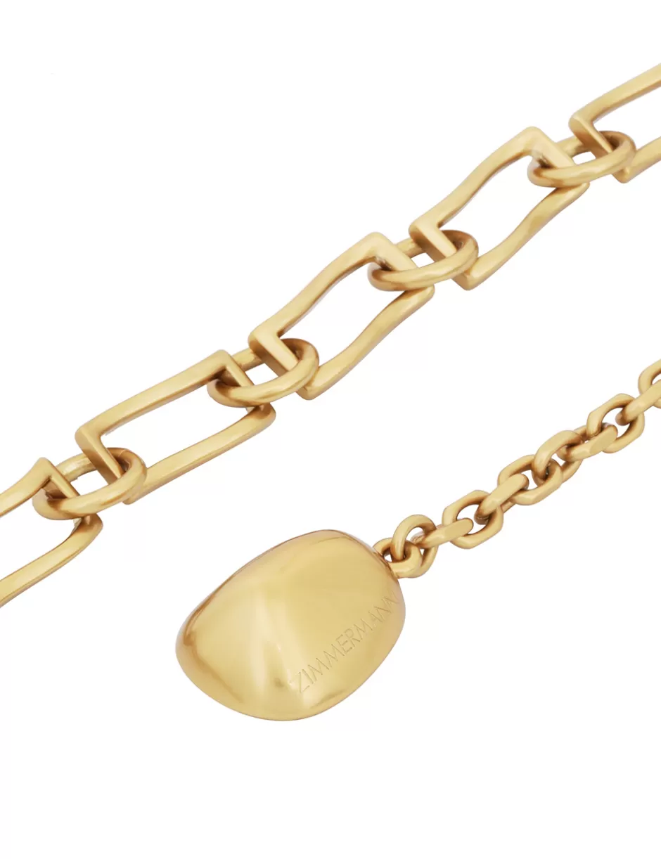 The Chain Belt in Gold from our Fall 2024 Collection, In Illustration. A chain waist belt featuring a custom pebble hard…