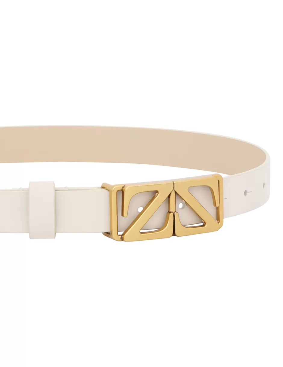 The Monogram Belt 25 in Almond from our Fall 2024 Collection, In Illustration. A leather belt featuring a custom gold double Z hardware.