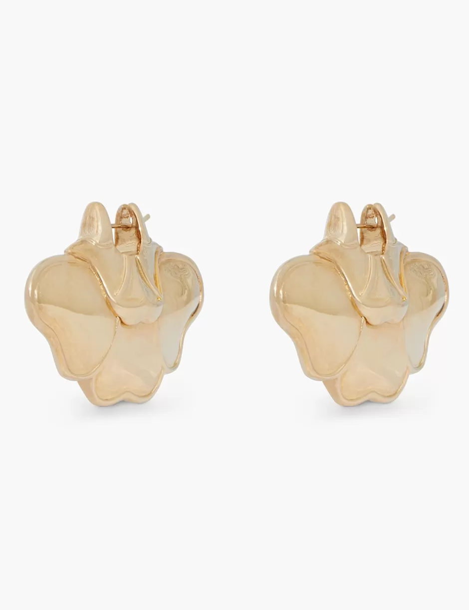 The Zimmermann Flore Earrings in Gold from our Fall 2024 Collection, In Illustration. A gold plated statement earring featuring stud post back.