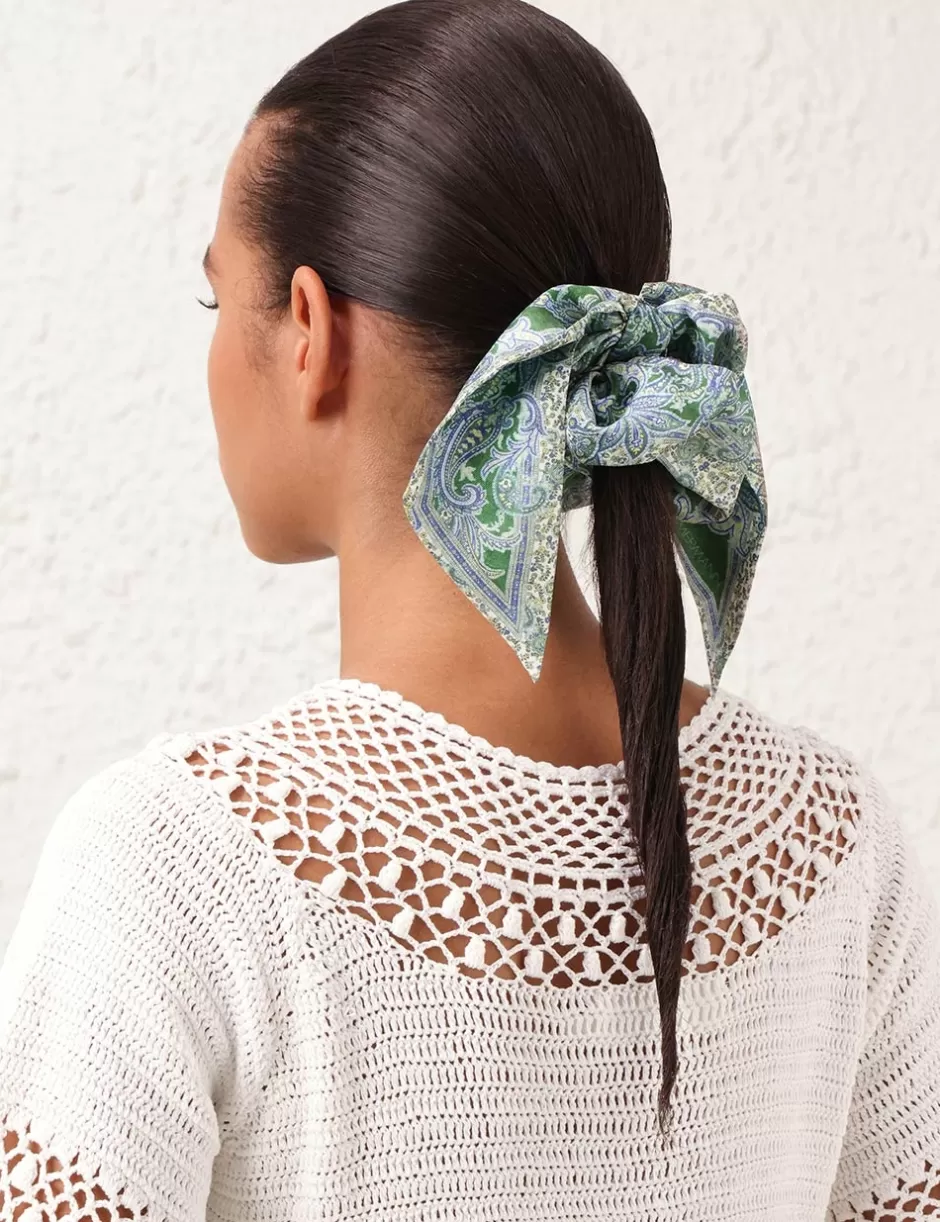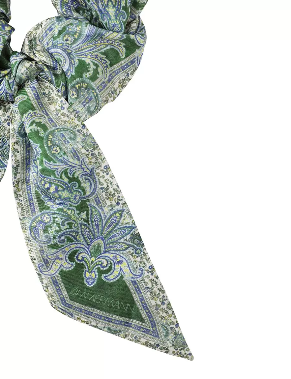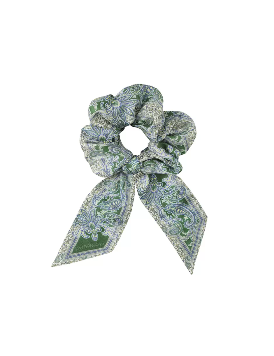 The Printed Silk Scrunchie in Green Paisley from our Summer Swim 2024 Collection. A silk scrunchie featuring contrast pi…