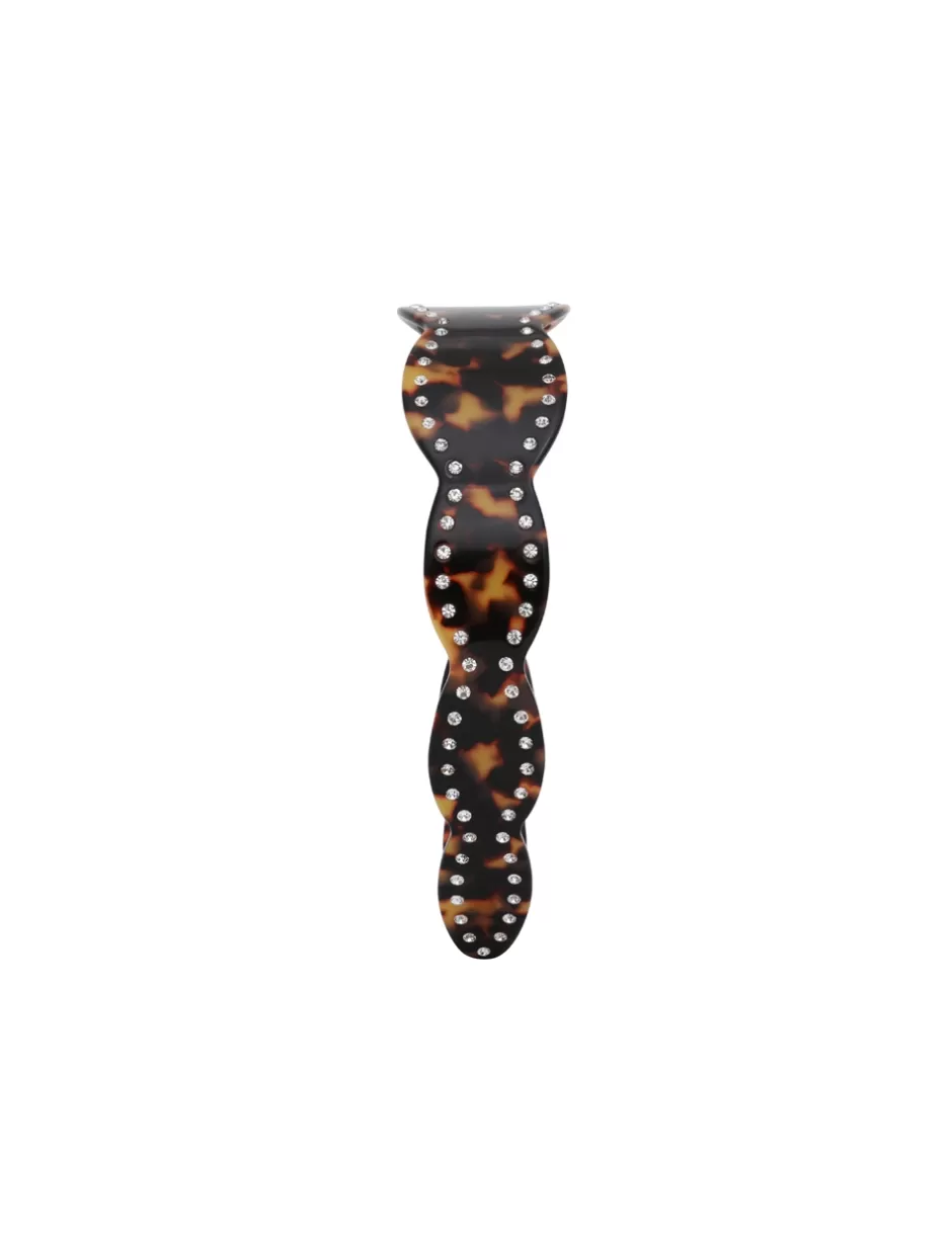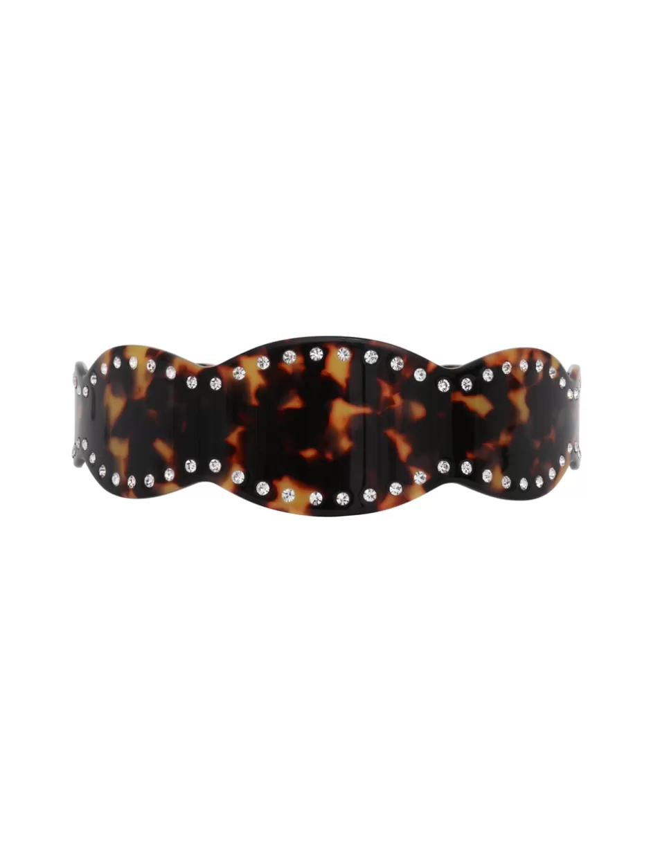 The Rhinestone Headband in Havana from our Resort 2025 Collection, Crush. An acetate headband featuring rhinestone detailing.