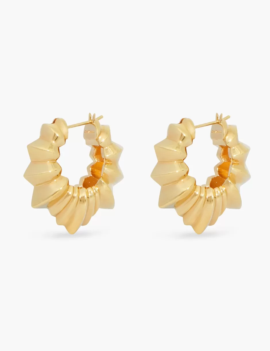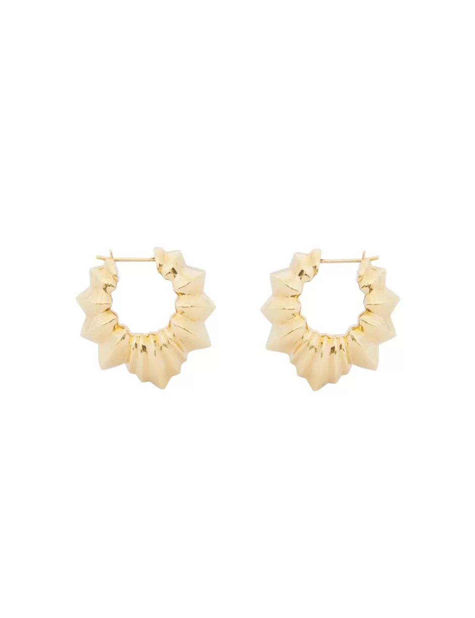 The Zimmermann Deco Hoops in Gold from our Fall 2024 Collection, In Illustration. A gold plated statement earring featuring spike detailing throughout.