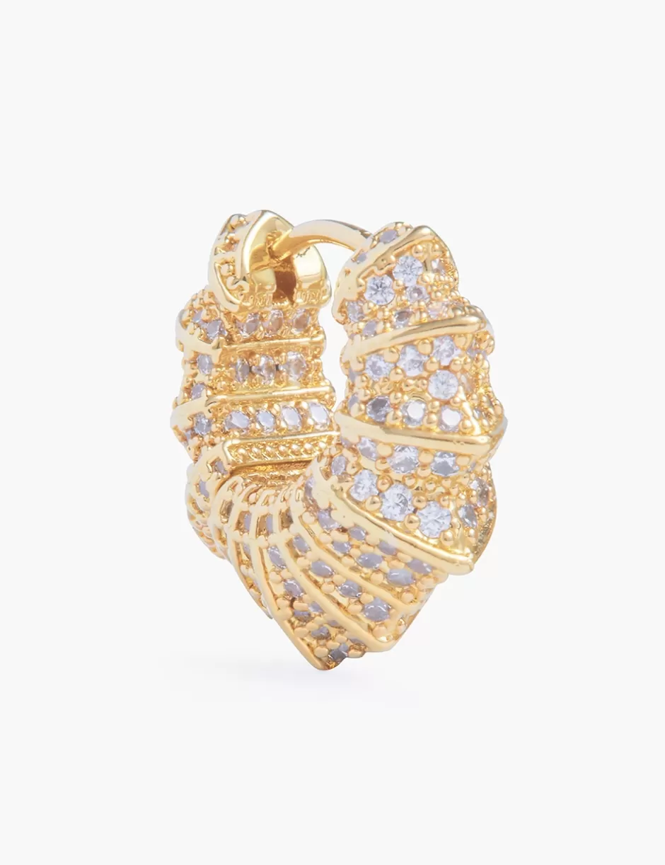 The Zimmermann Deco Pave Hoops in Gold from our Fall 2024 Collection, In Illustration. A gold plated statement earring featuring white cubic zirconia stones throughout.