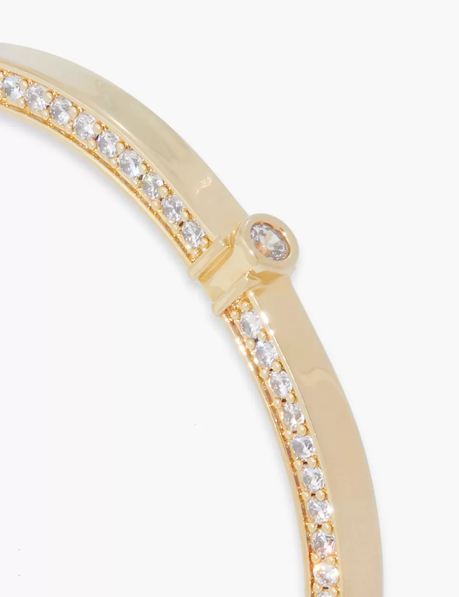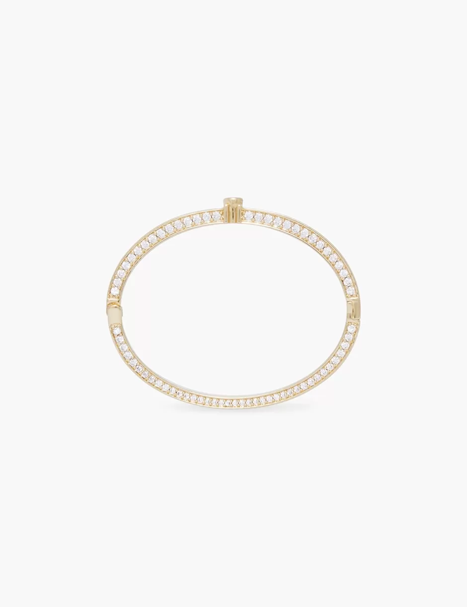 The Zimmermann Halo Pave Bangle in Gold from our Fall 2024 Collection, In Illustration. A gold plated wrist bangle featuring white cubic zirconia stones throughout.