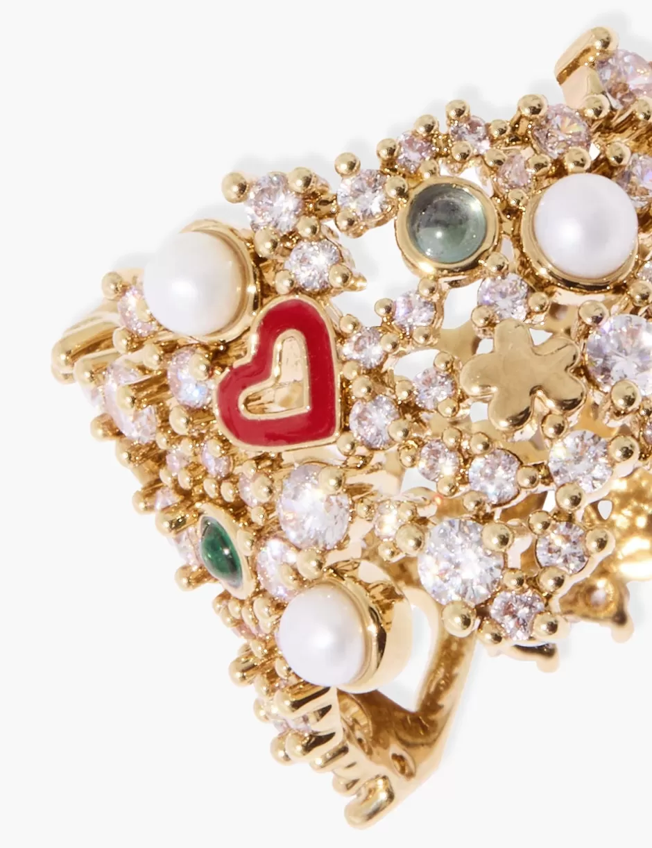 The Zimmermann Nova Band Ring in Gold from our Resort 2025 Collection, Crush. A gold plated ring featuring quartz, zircon and fresh water pearls throughout.
