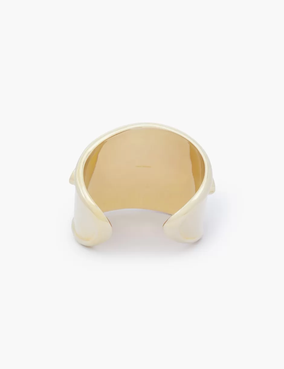 The Zimmermann Petal Cuff in Gold/Black from our Fall 2024 Collection, In Illustration. A gold plated wrist cuff featuri…