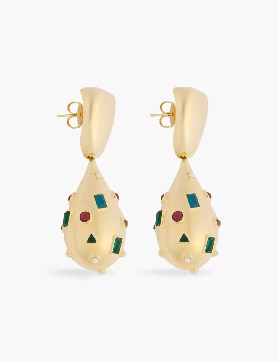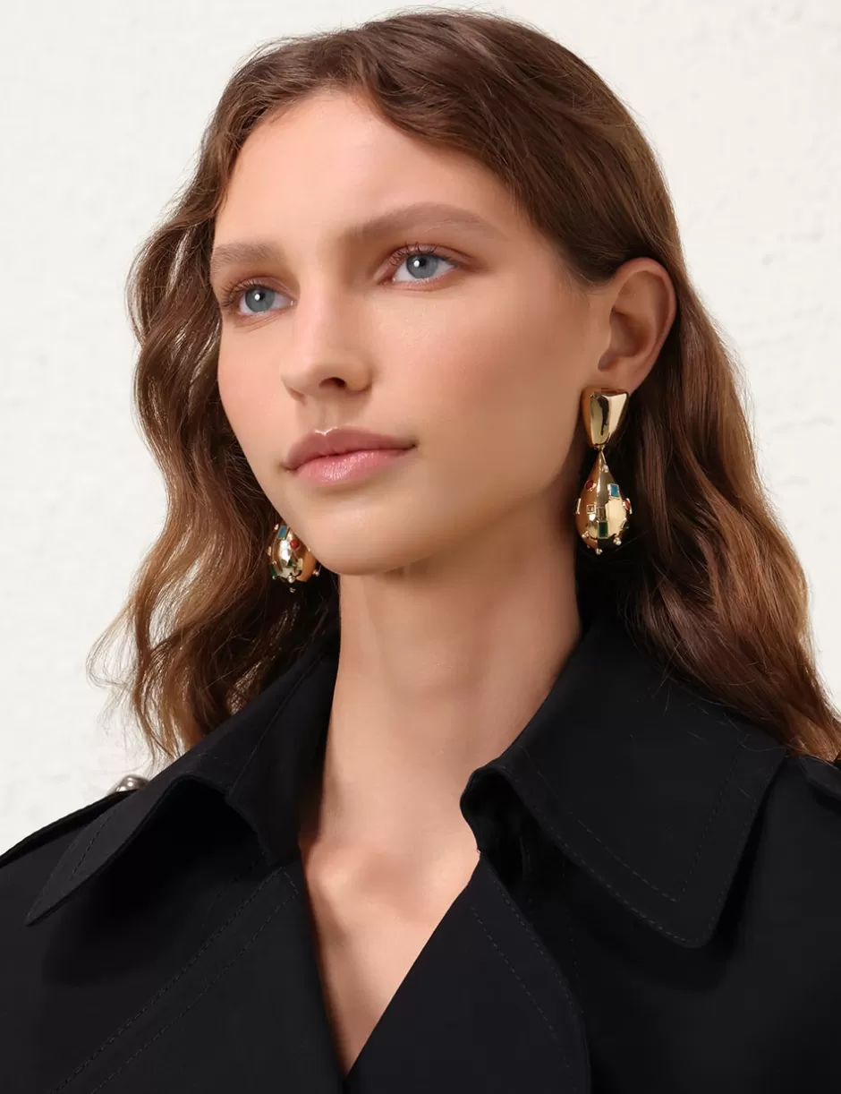 The Zimmermann Wish Earrings in Gold from our Resort 2025 Collection, Crush. A gold plated statement earring featuring quartz, jasper, agate stones and fresh water pearls throughout.