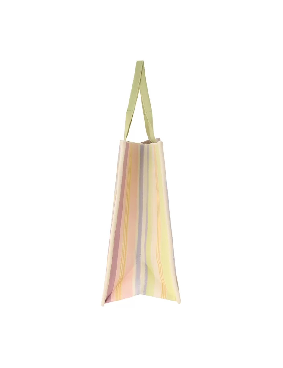 The Large Jacquard Tote in Multi Stripe from our Summer Swim 2024 Collection. A large tote bag featuring an interior pocket and snap button closure.