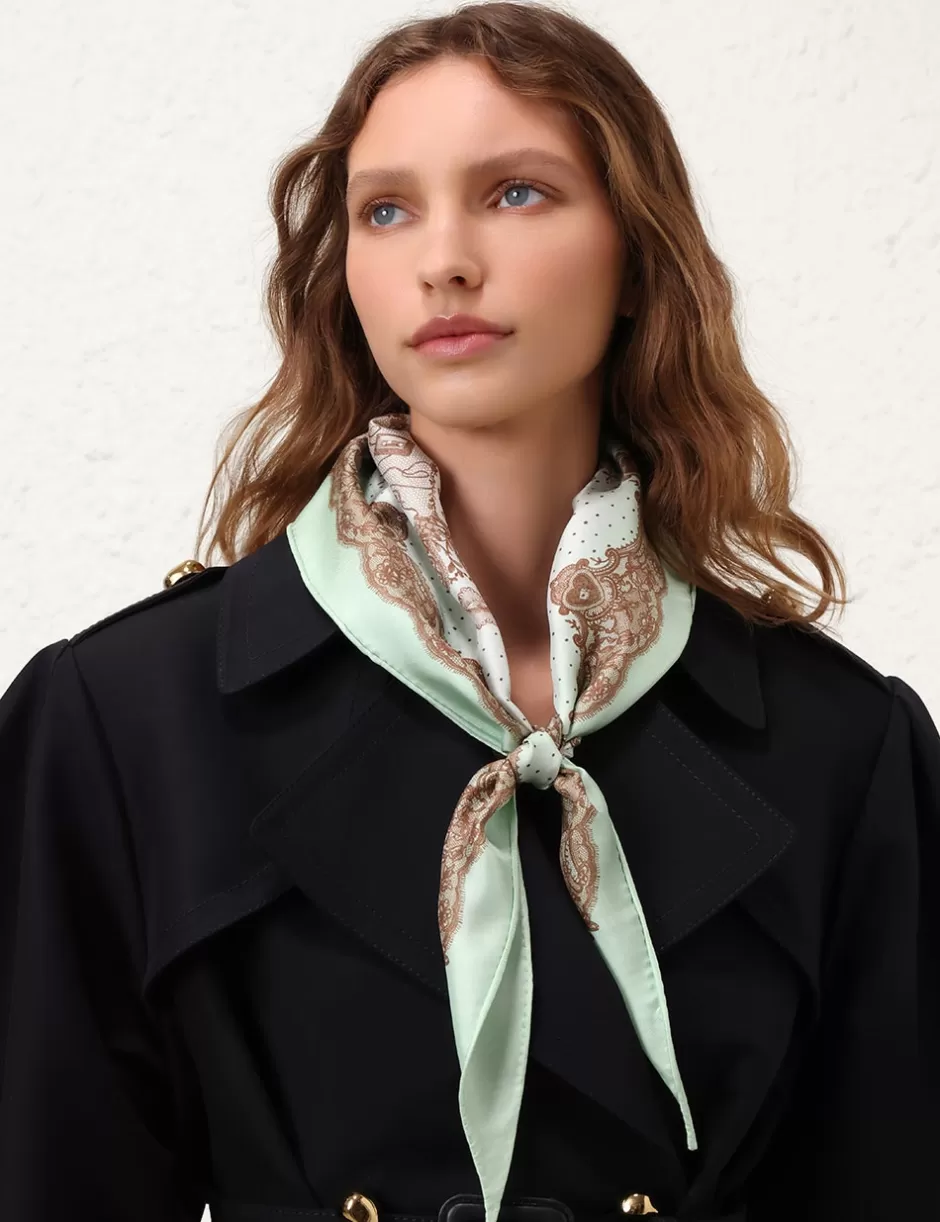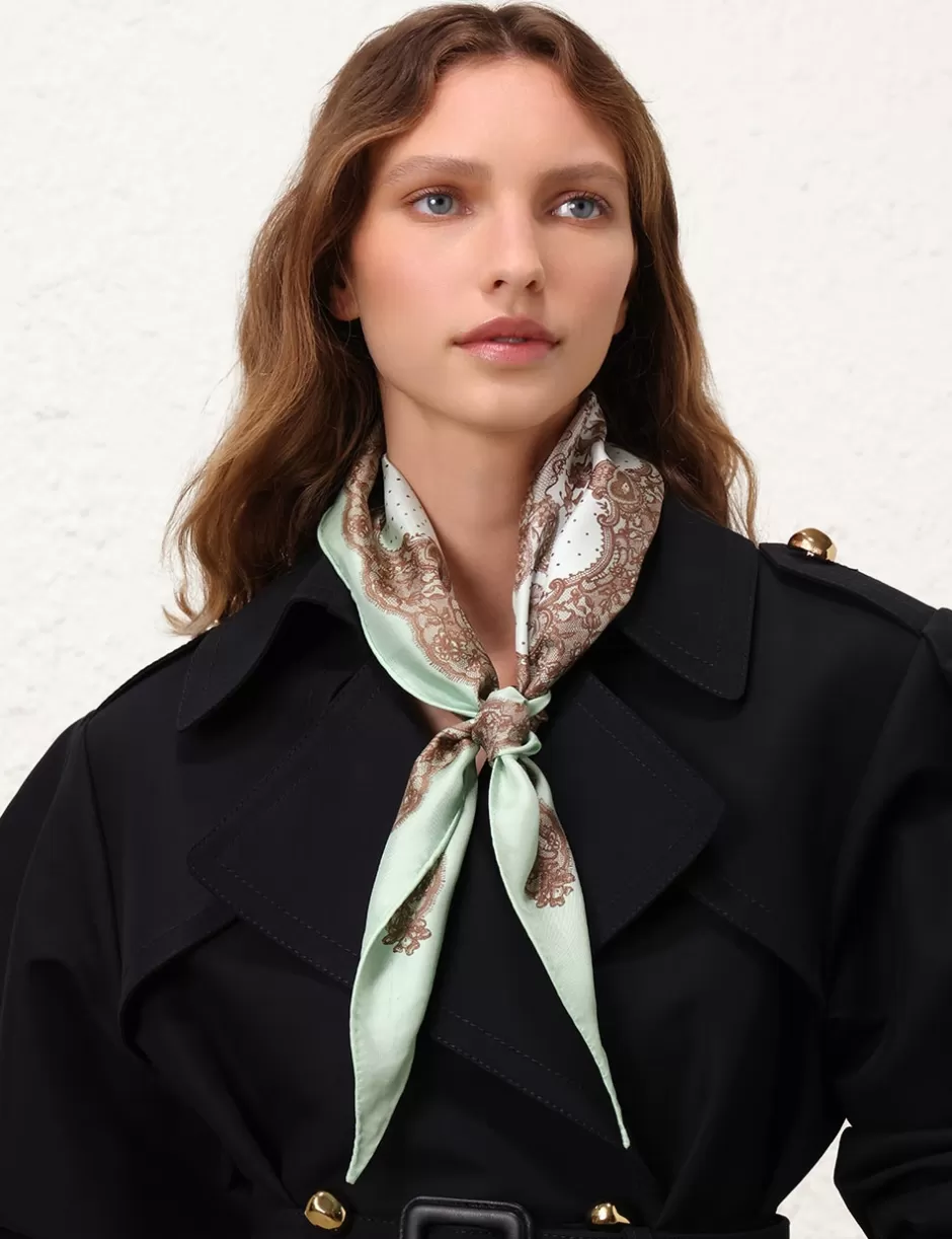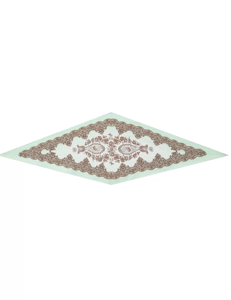 The Printed Silk Diamond Scarf in Locket Lace Mint Hint Ombre from our Resort 2025 Collection, Crush. A silk diamond scarf featuring a customised placement print and fine rolled hem.