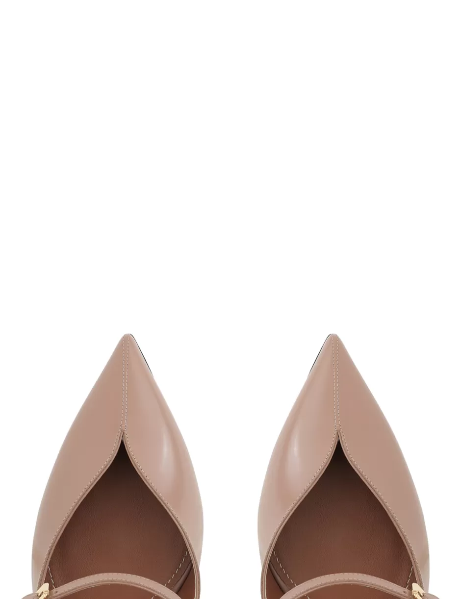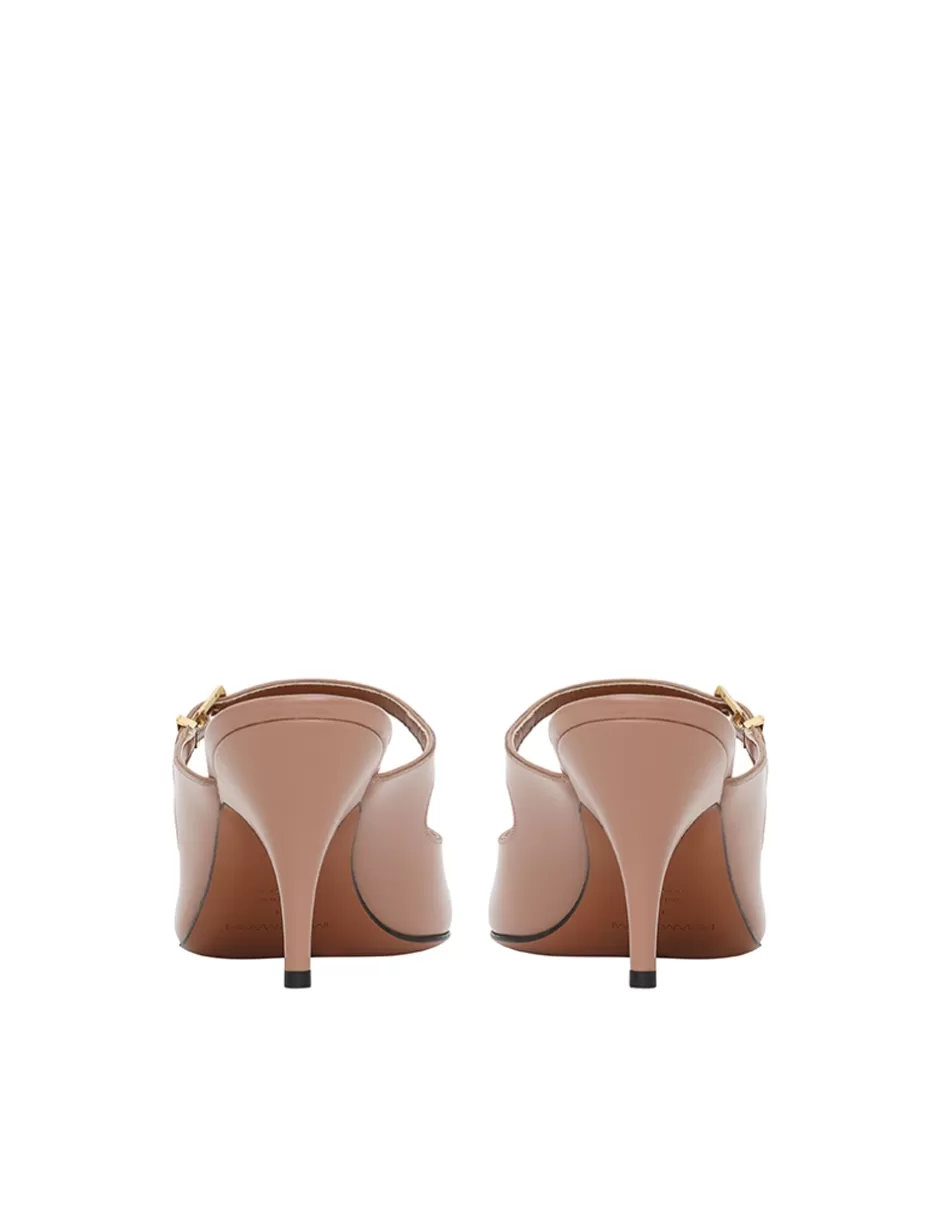 The Zimmermann Aura Mule 65 in Biscuit from our Fall 2024 Collection, In Illustration. A stiletto mule featuring a leather exterior and a gloss finish heel.