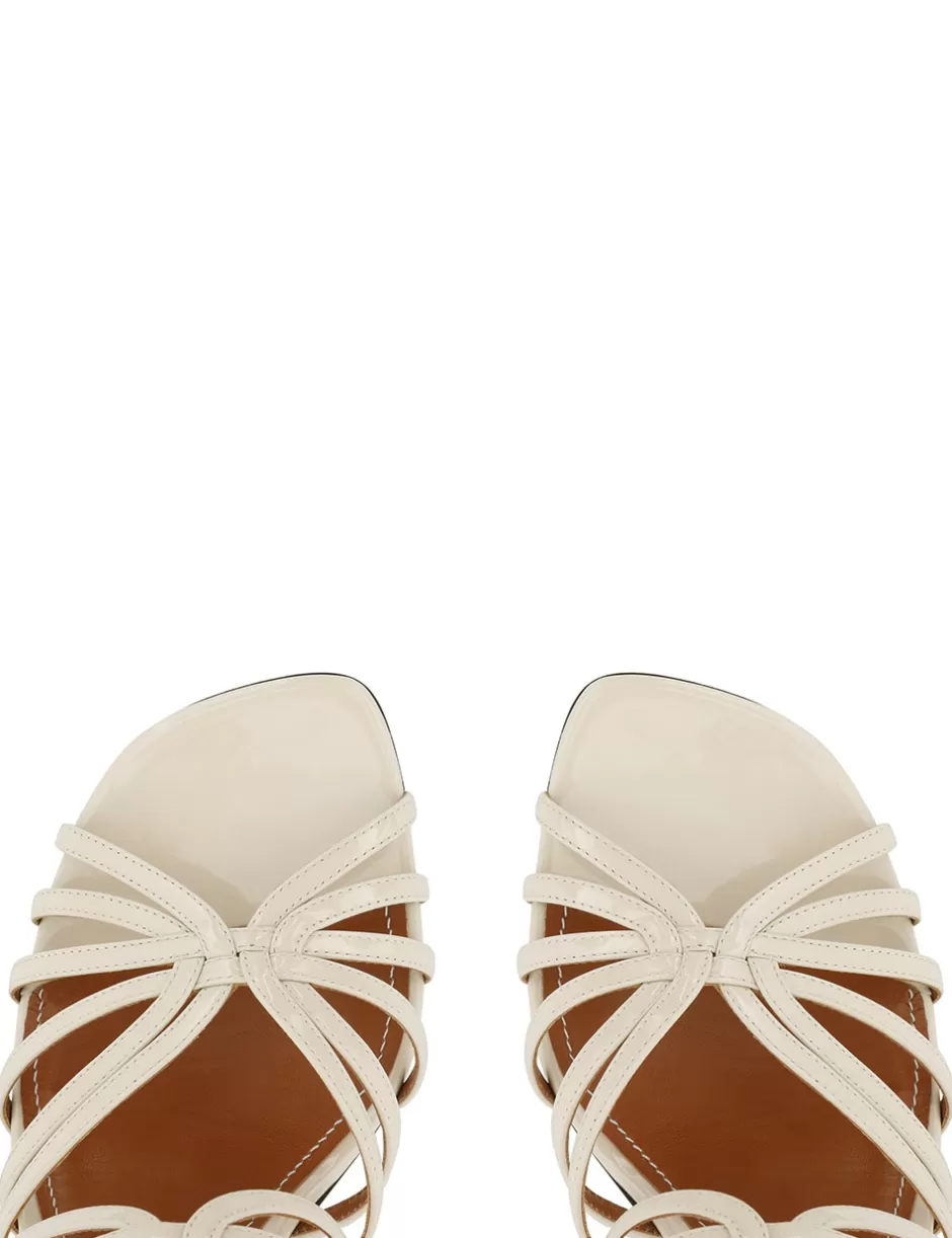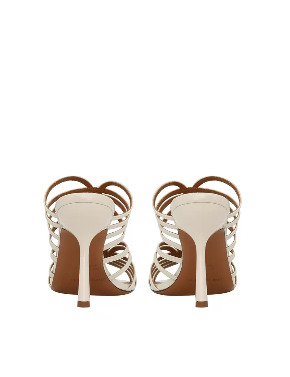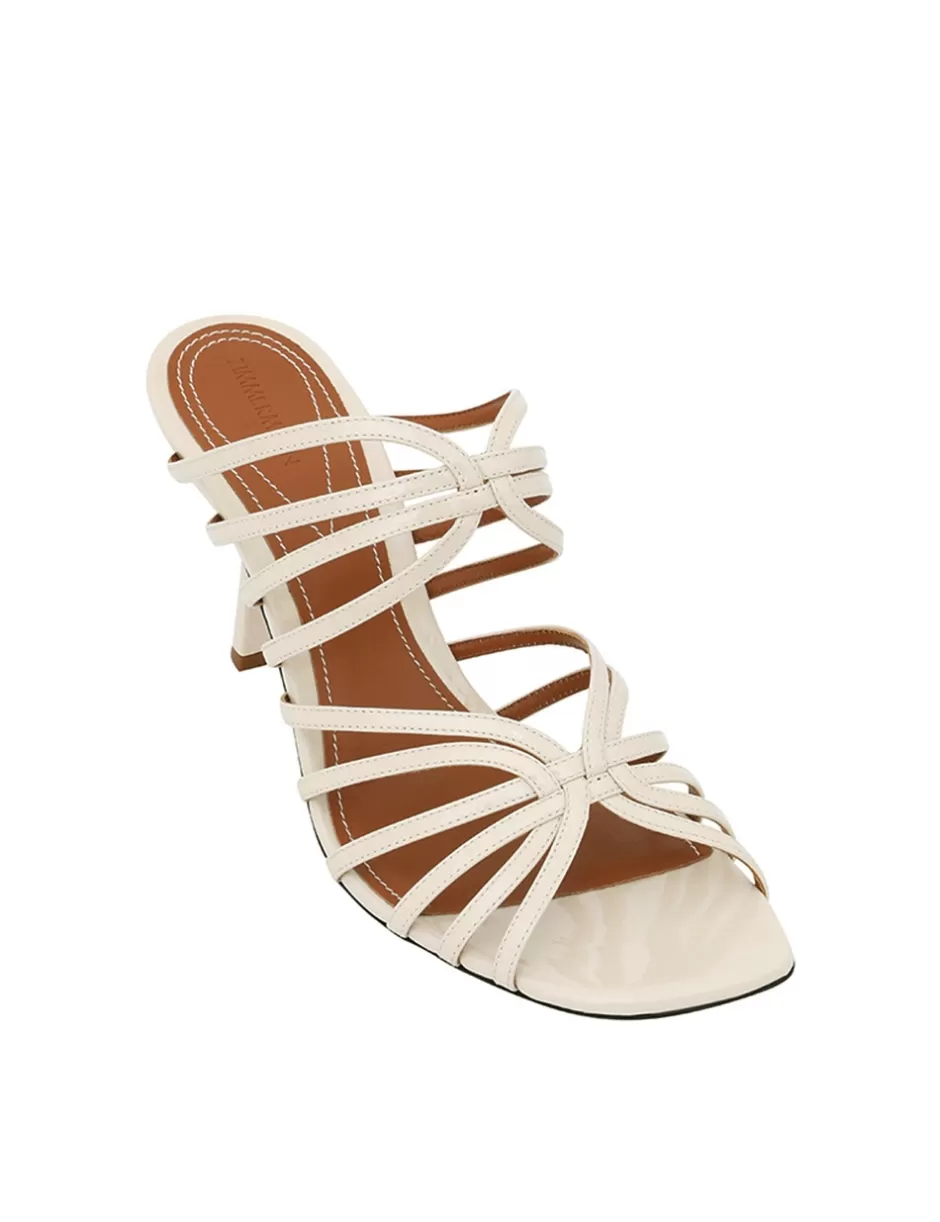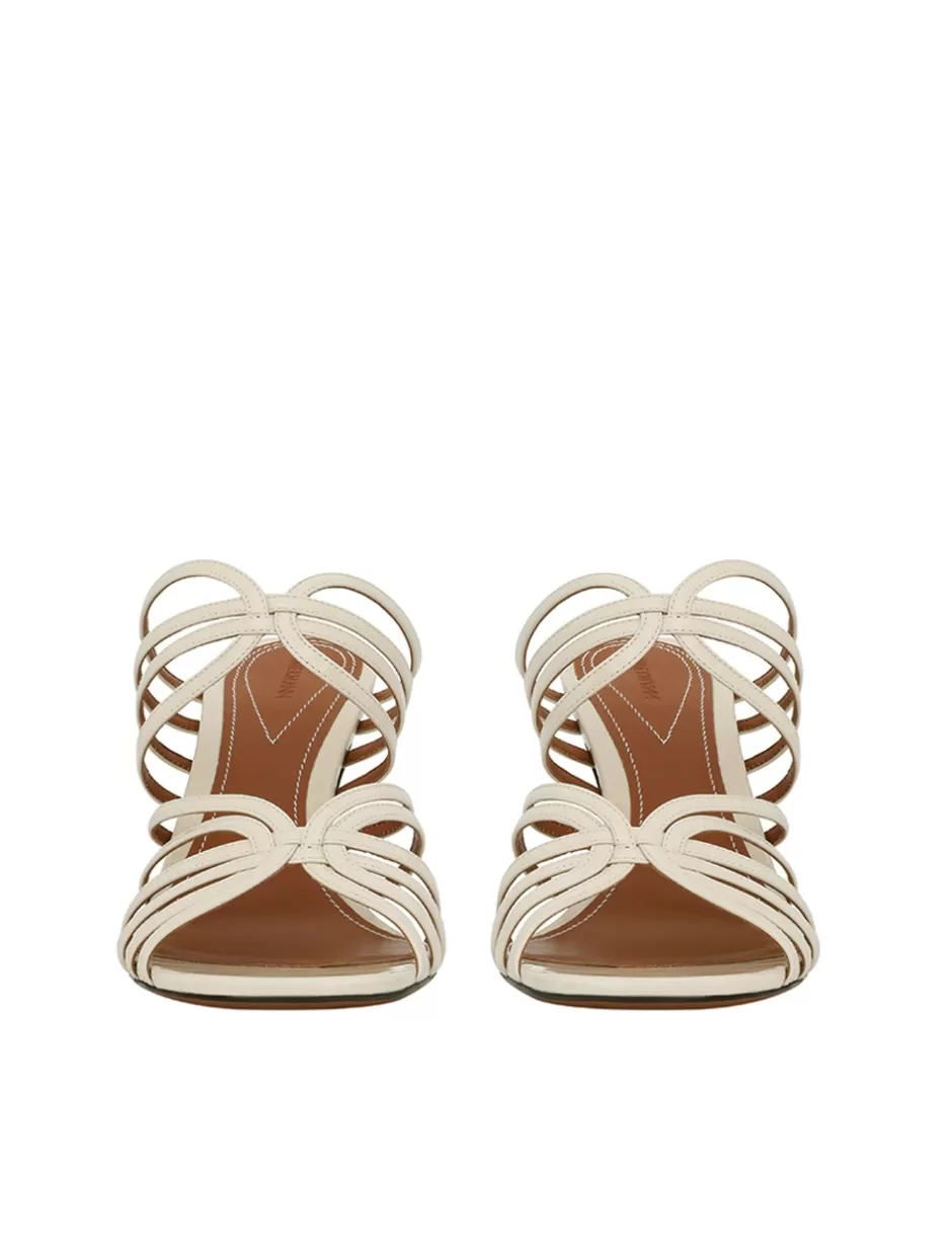 The Zimmermann Aura Mule Sandal 85 in Vanilla from our Resort 2025 Collection, Crush. A leather mule sandal featuring a stiletto heel and a square toe.