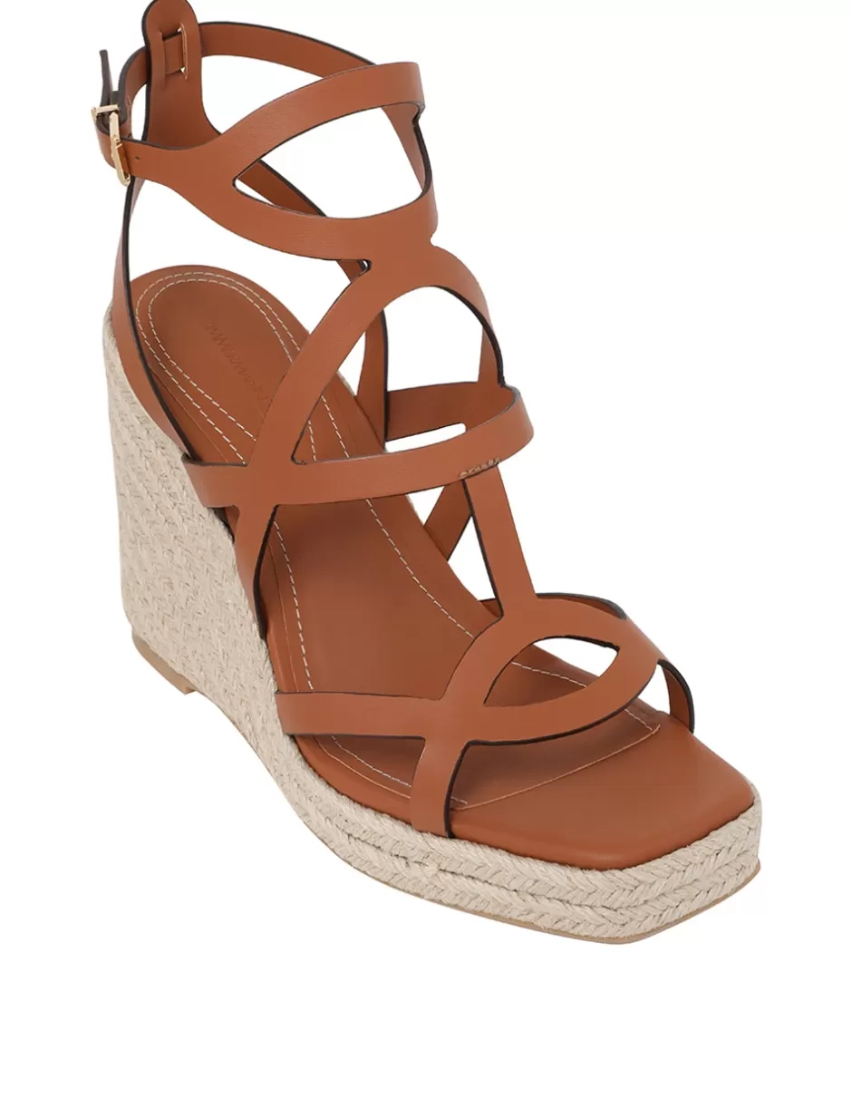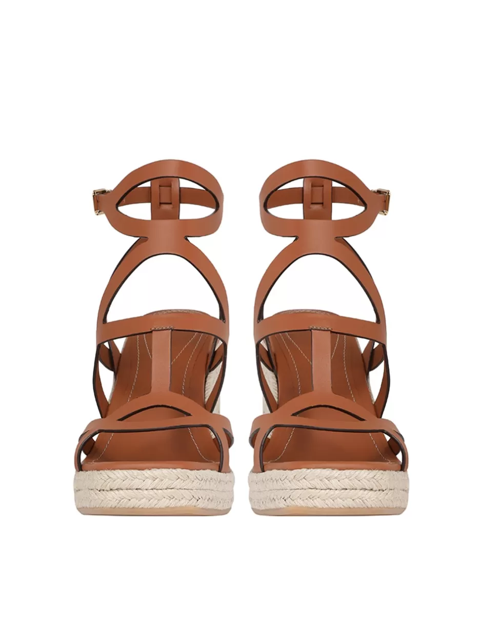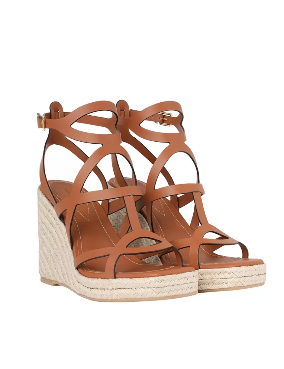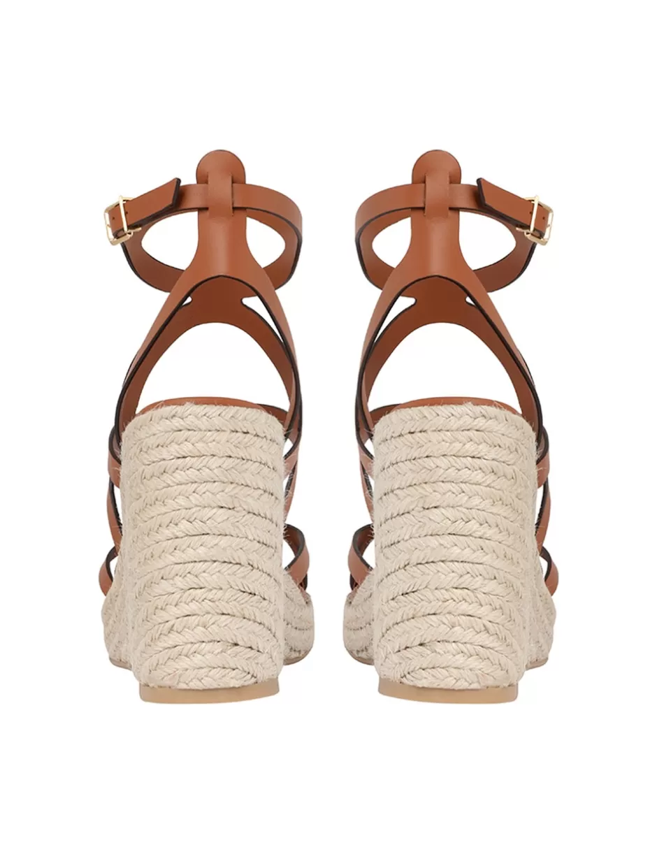 The Zimmermann Bay Espadrilles 110 in Avalon from our Spring 2024 Collection, Natura. A wedge heel featuring criss-crossed leather straps and a buckle ankle fastening.