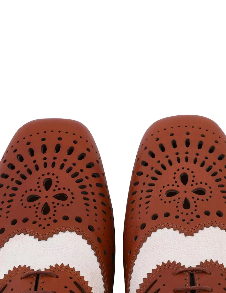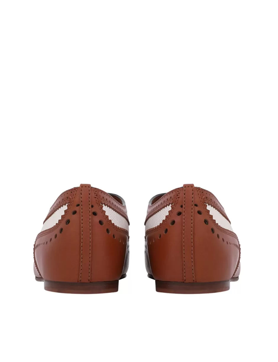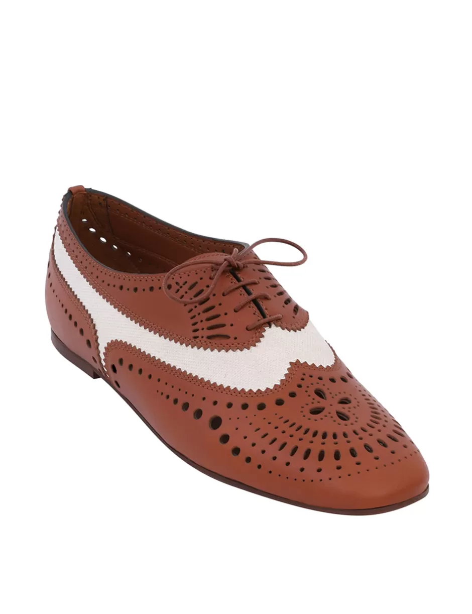 The Zimmermann Eliot Derby in Tan from our Resort 2025 Collection, Crush. A leather derby featuring lace up brogue detailing.