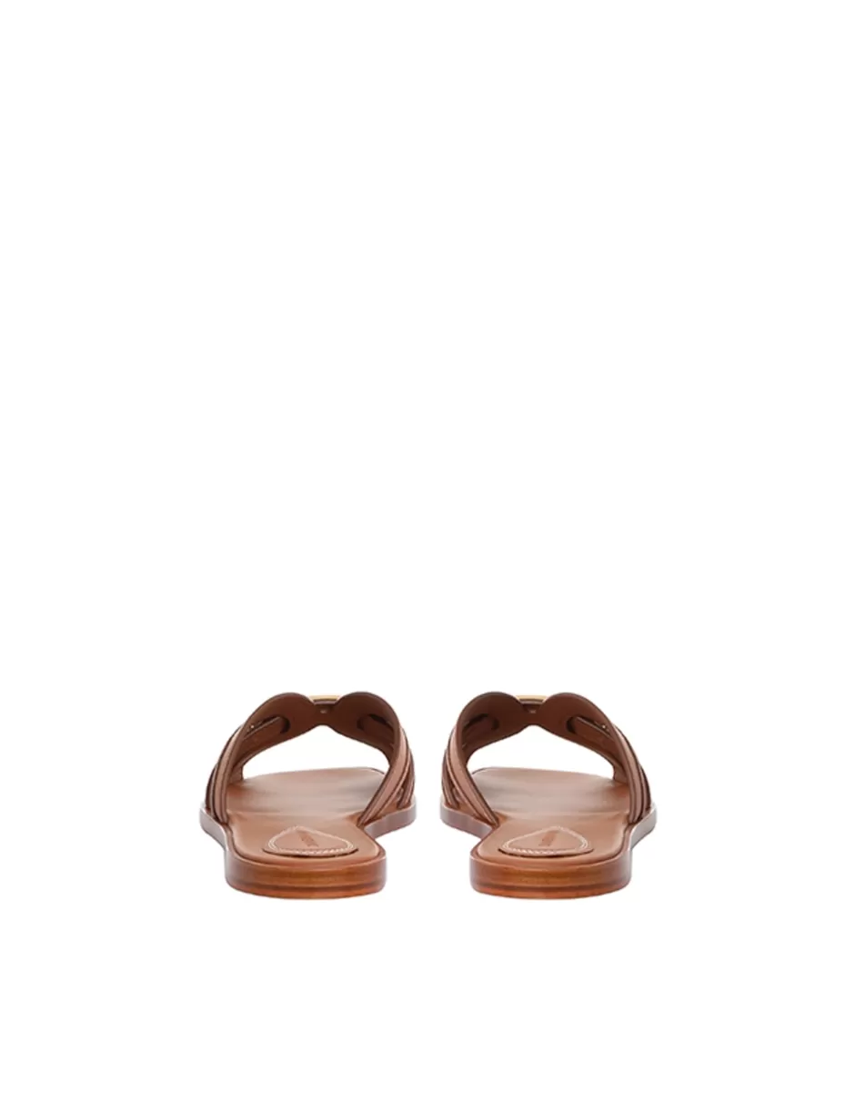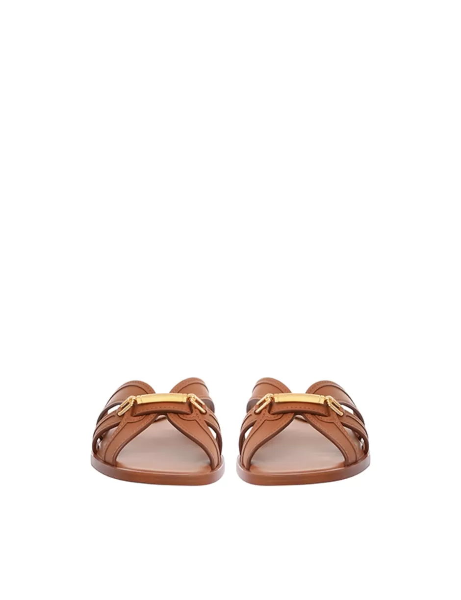 The Prisma Slide in Avalon from our Resort 2024 Collection, Matchmaker. A leather slide sandal featuring ZIMMERMANN branded hardware.