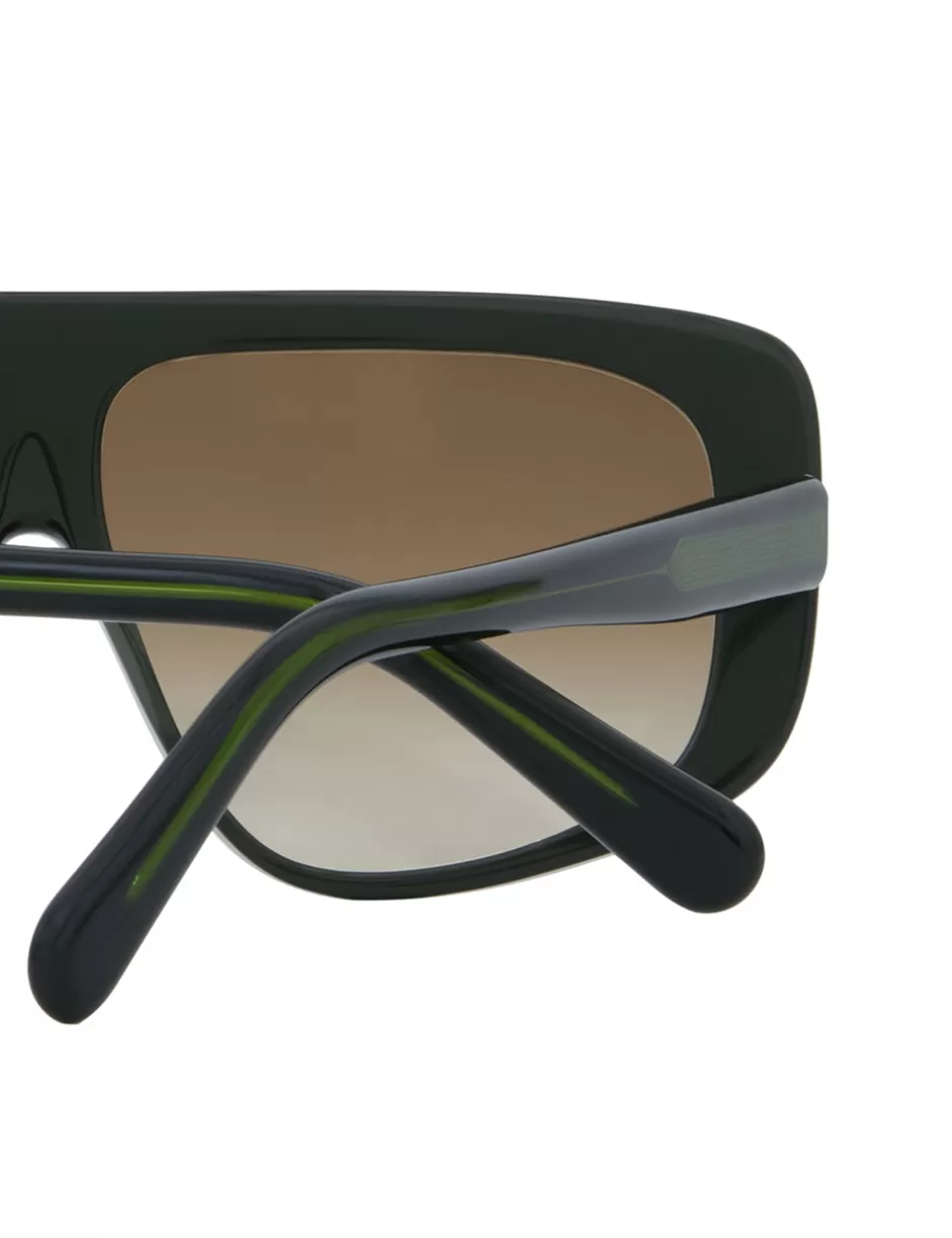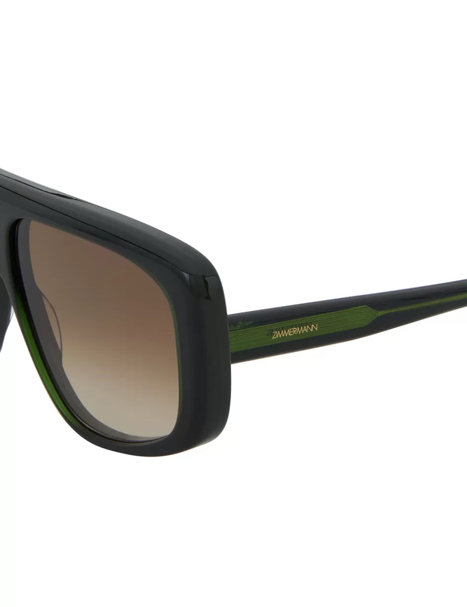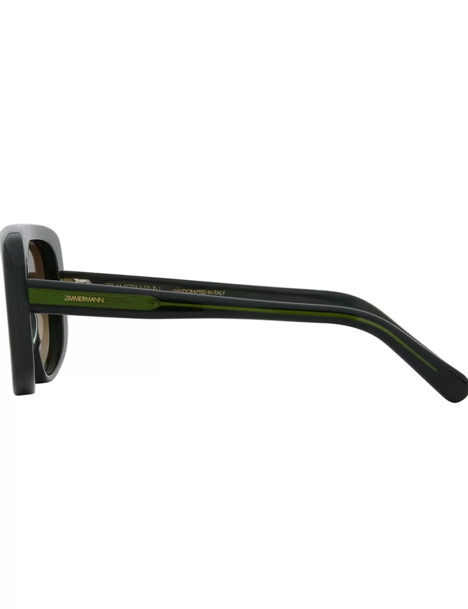 The Zimmermann Liv Mask in Khaki from our Resort 2025 Collection, Crush. A soft curved acetate frame featuring an oversized mask style frame and gradient lenses.
