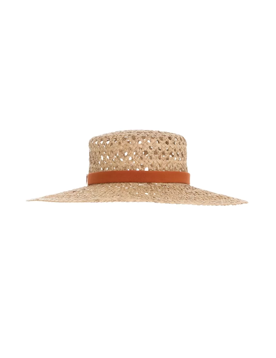 The Straw Boater in Natural from our Summer Swim 2024 Collection. A wide brim straw boater featuring a grosgrain trim and ZIMMERMANN branded hardware.