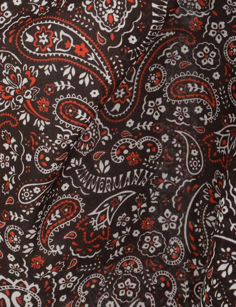 The Cotton Printed Pareo in Zimmermann Paisley from our Resort Swim 2025 Collection. A large rectangle cotton pareo featuring frayed edges and a placement print throughout.