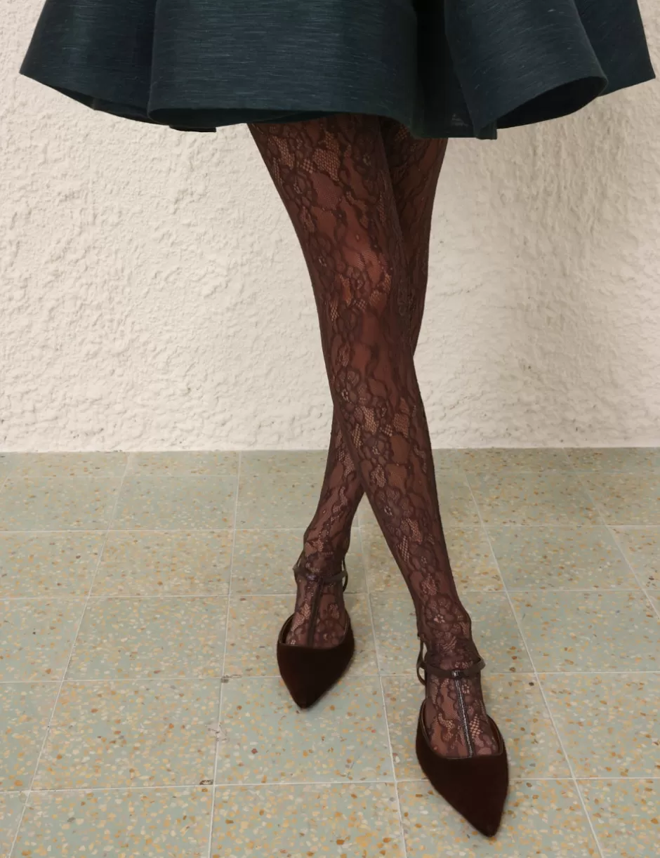 The Illustration Lace Leggings in Mahogany from our Fall 2024 Collection, In Illustration. A classic sheer lace leggings.