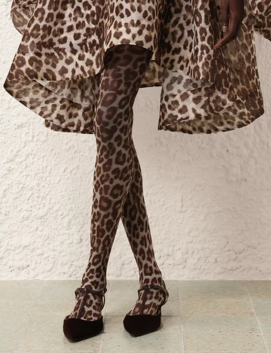 The Leopard Print Tights in Chocolate Leopard from our Fall 2024 Collection, In Illustration. A classic sheer tight with a leopard print throughout.