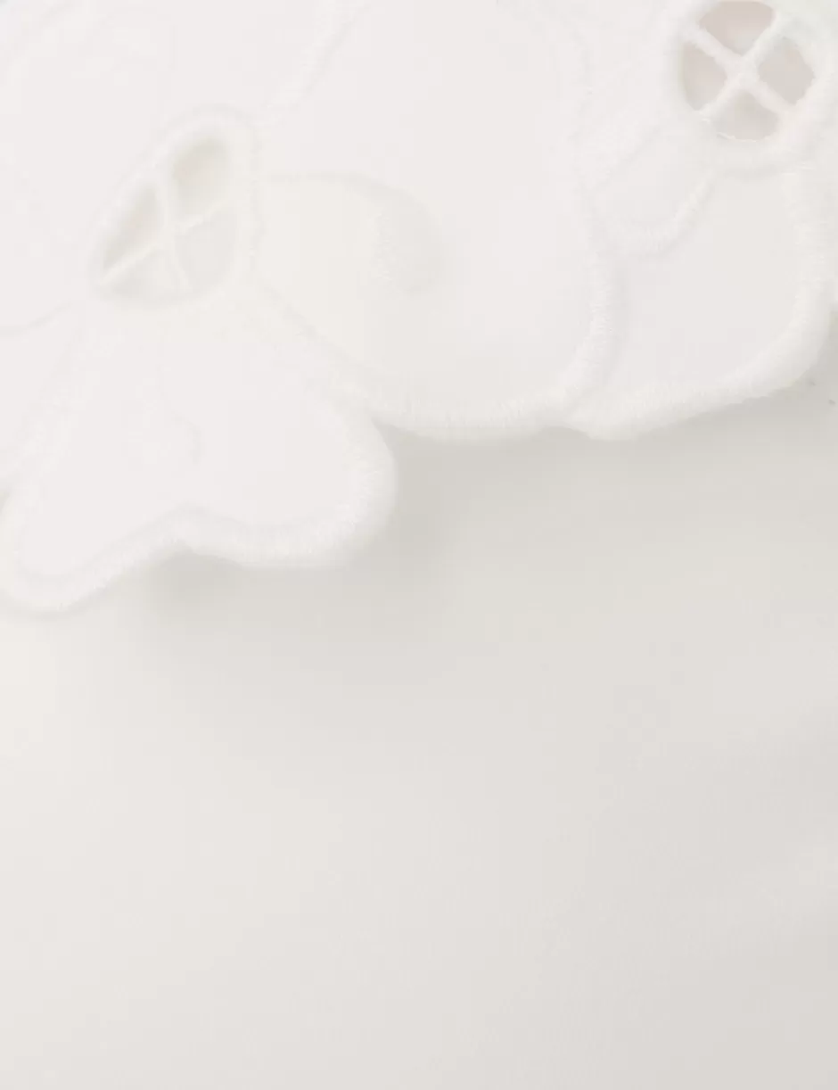 The Golden Embroidery Frill Bikini in Ivory from our Summer Swim 2024 Collection. An Italian lycra bikini set featuring a triangle top with embroidered frills and a classic low rise pant.