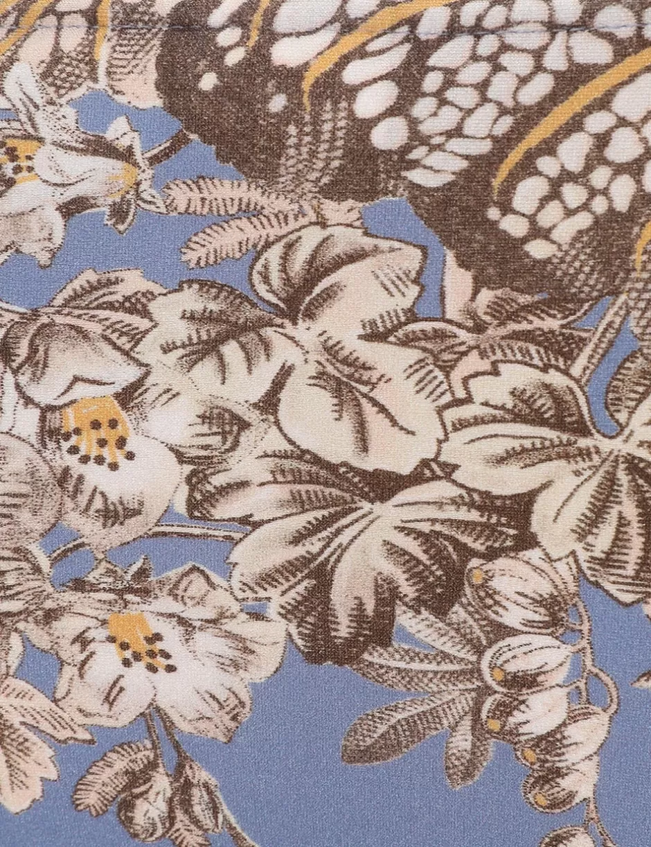 The Ring Tie Bikini in Blue Floral from our Summer Swim 2024 Collection. An Italian lycra triangle bikini top and low rise, skinny pants featuring rings throughout and self tie straps with toggle ends.