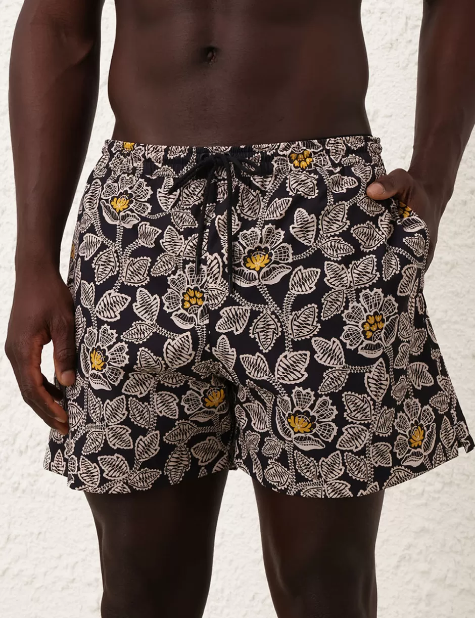 The Ottie Mens Boardshort in Black Floral from our Summer Swim 2024 Collection. A printed boardshort with elasticated waistband, drawstring cord, side seam pockets and inbuilt support mesh lining.