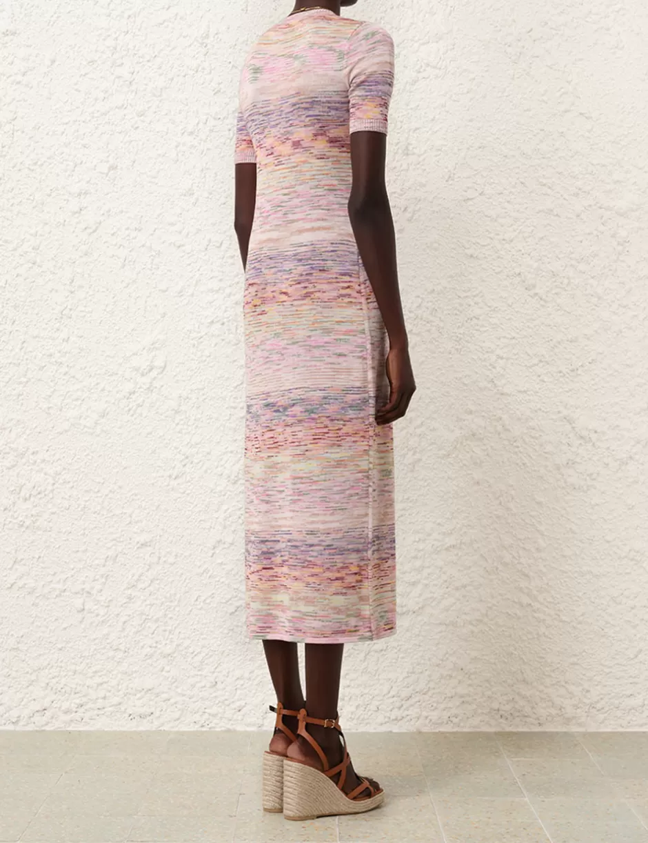 The Halliday Marl Dress in Multi from our Summer Swim 2024 Collection. A knitted marl midi dress featuring short sleeves and a contrast bind neckline.