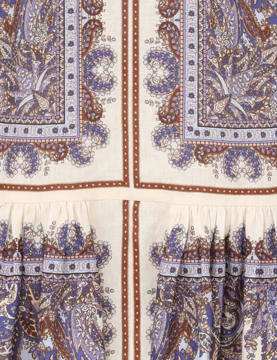 The Ottie Eyelet Mini Dress in Purple Paisley from our Summer Swim 2024 Collection. A mini dress featuring a placement print and an eyelet detail along the front yoke.