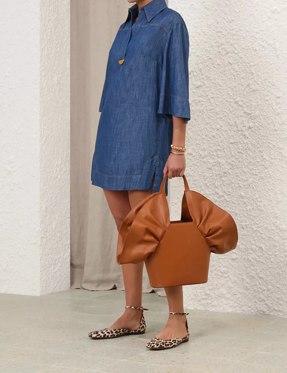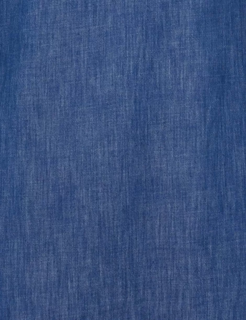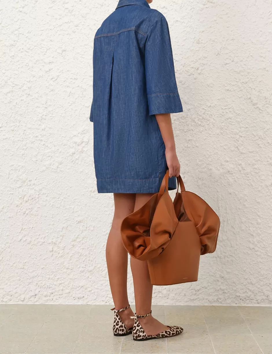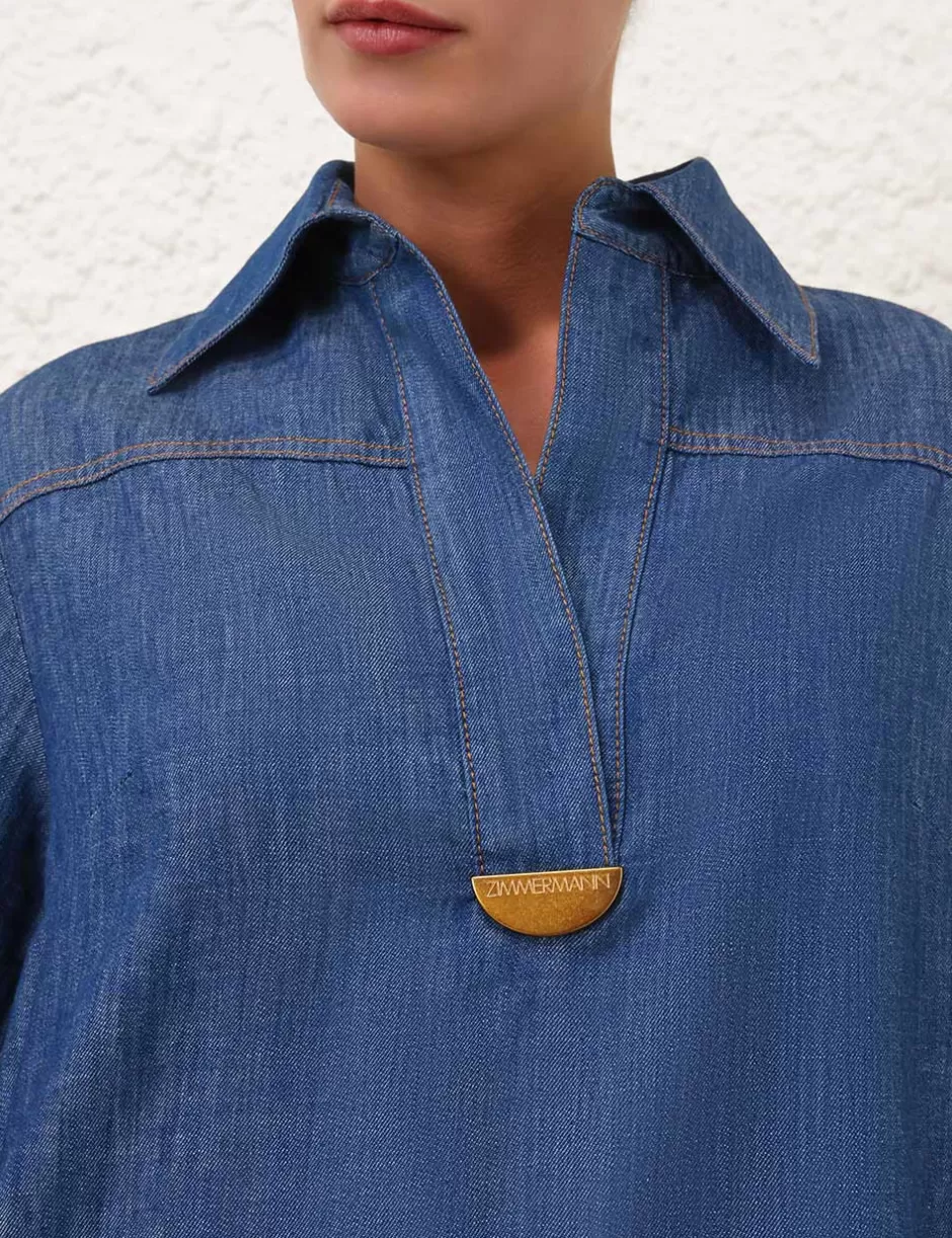 The Illustration Denim Tunic Dress in Railway Blue from our Fall 2024 Collection, In Illustration. A denim tunic dress featuring wide sleeves and a concealed front centre placket.