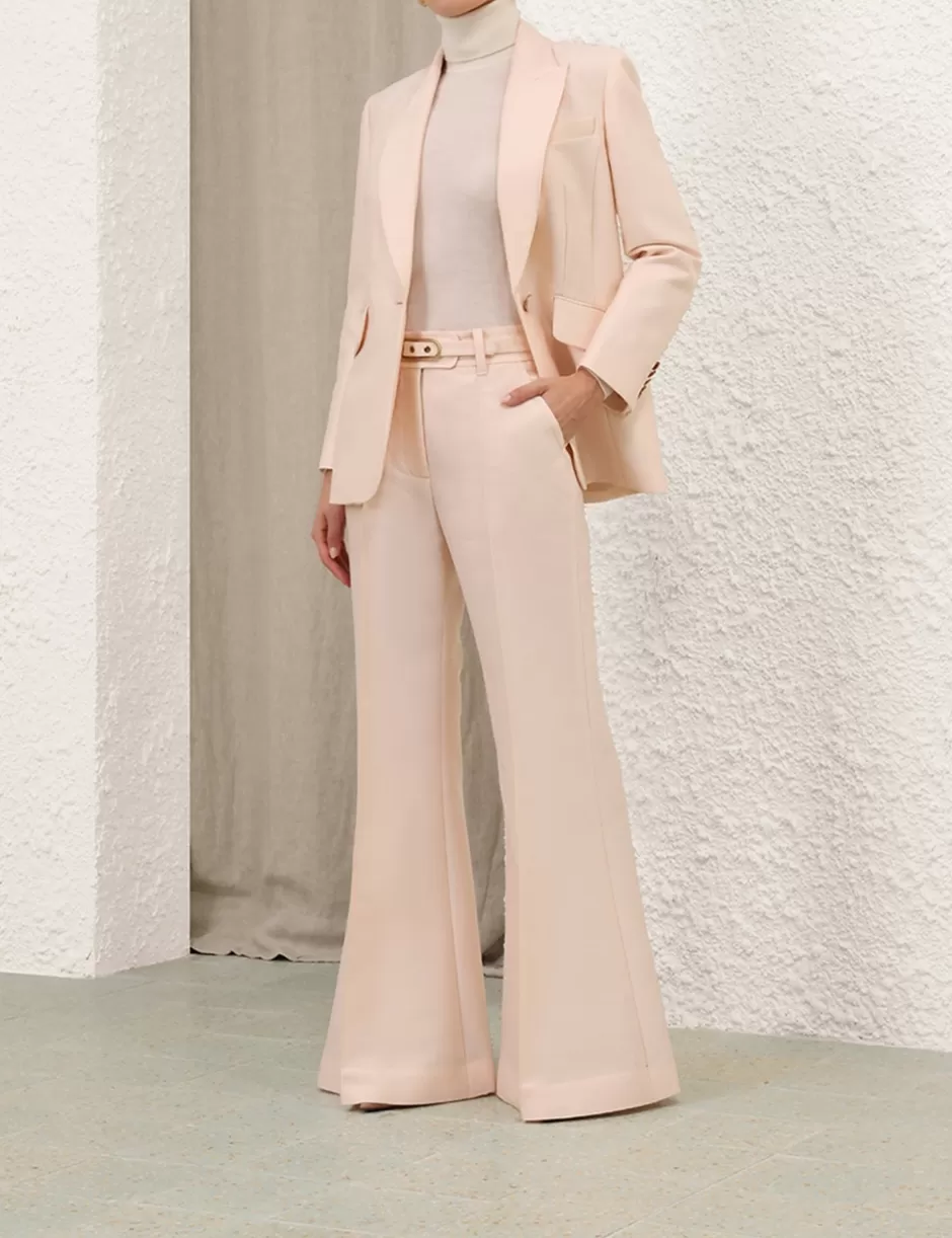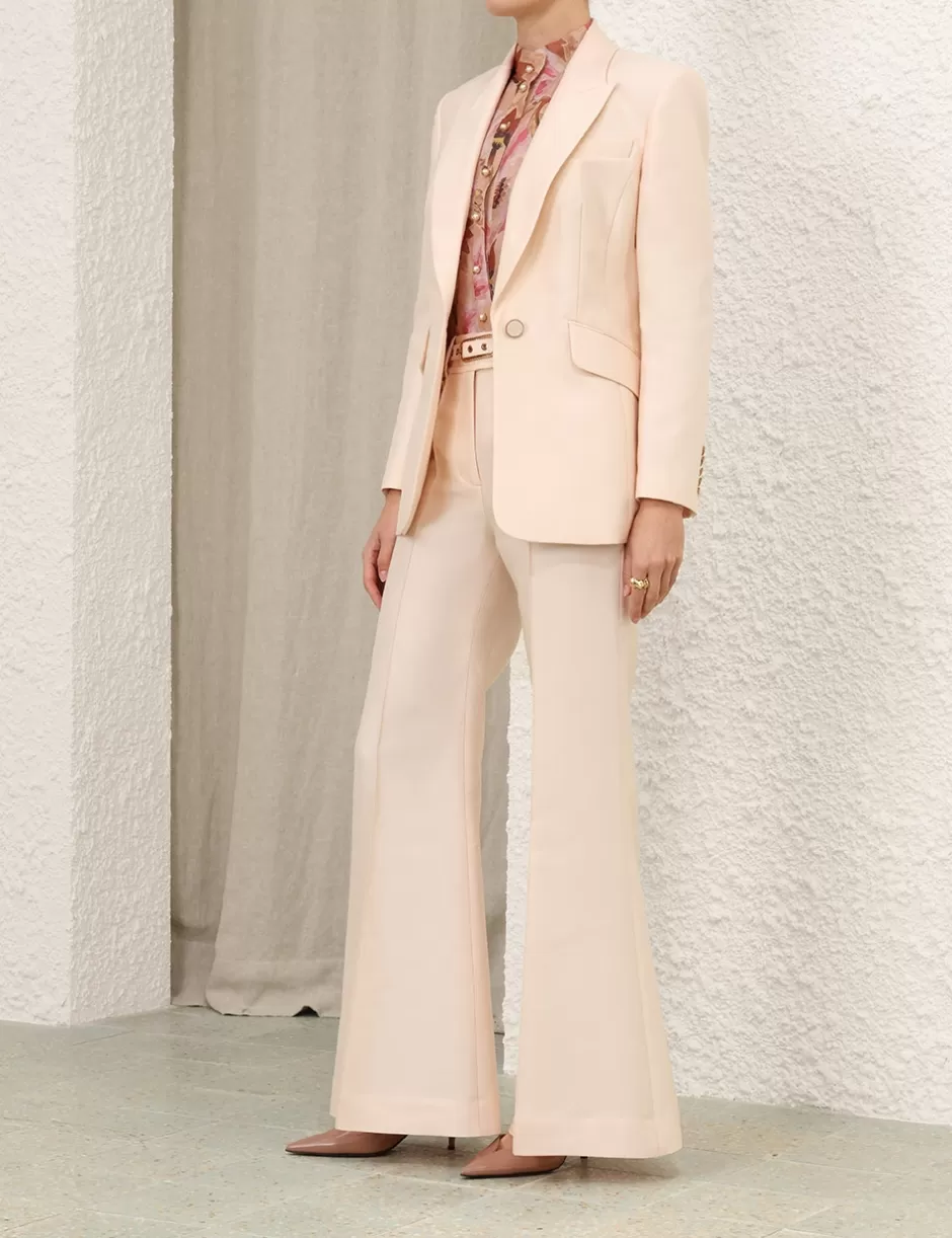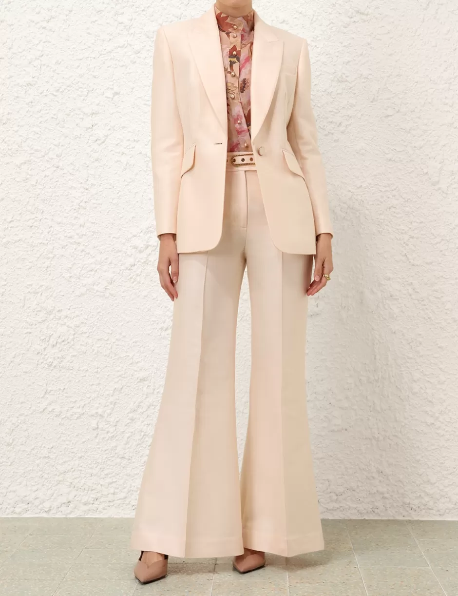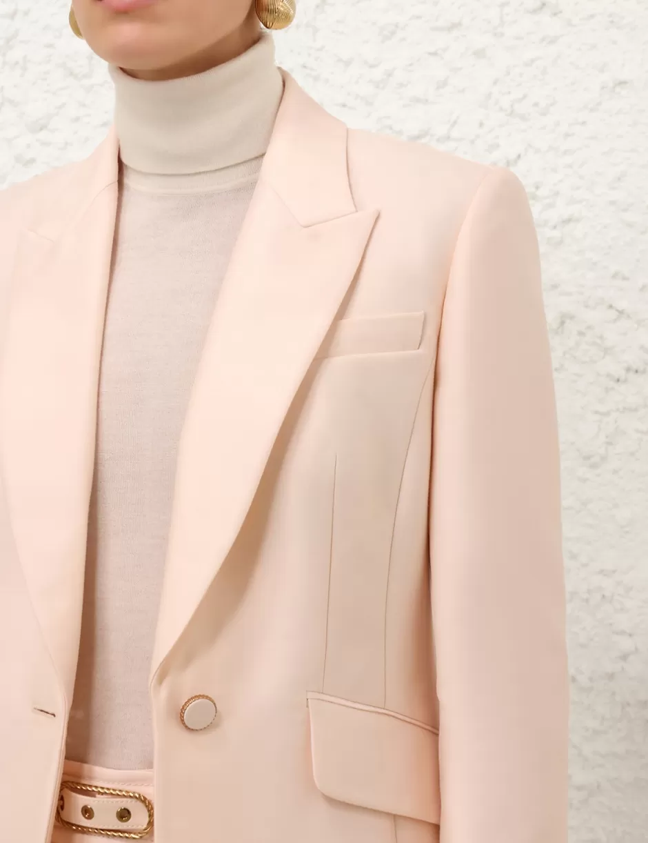 The Eden Tailored Jacket in Macadamia from our Fall 2024 Collection, In Illustration. A silk wool blazer featuring a tailored fit and single breasted closure.