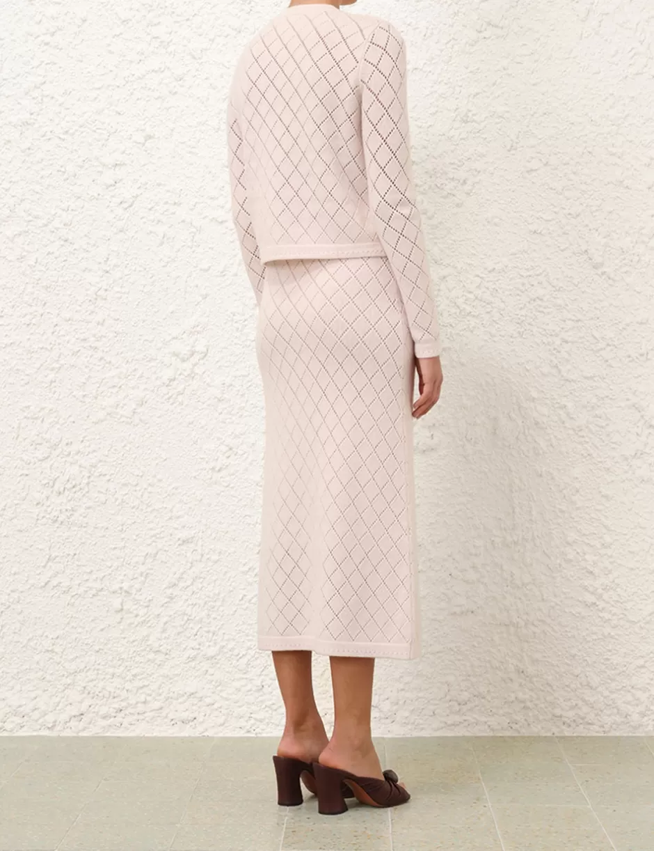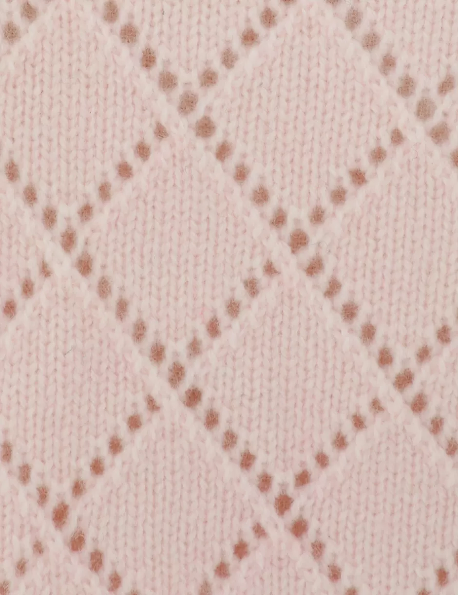 The Illustration Pointelle Top in Blush from our Fall 2024 Collection, In Illustration. A long sleeve wool knit top featuring buttons down the centre front, chest pockets and a rounded neckline.