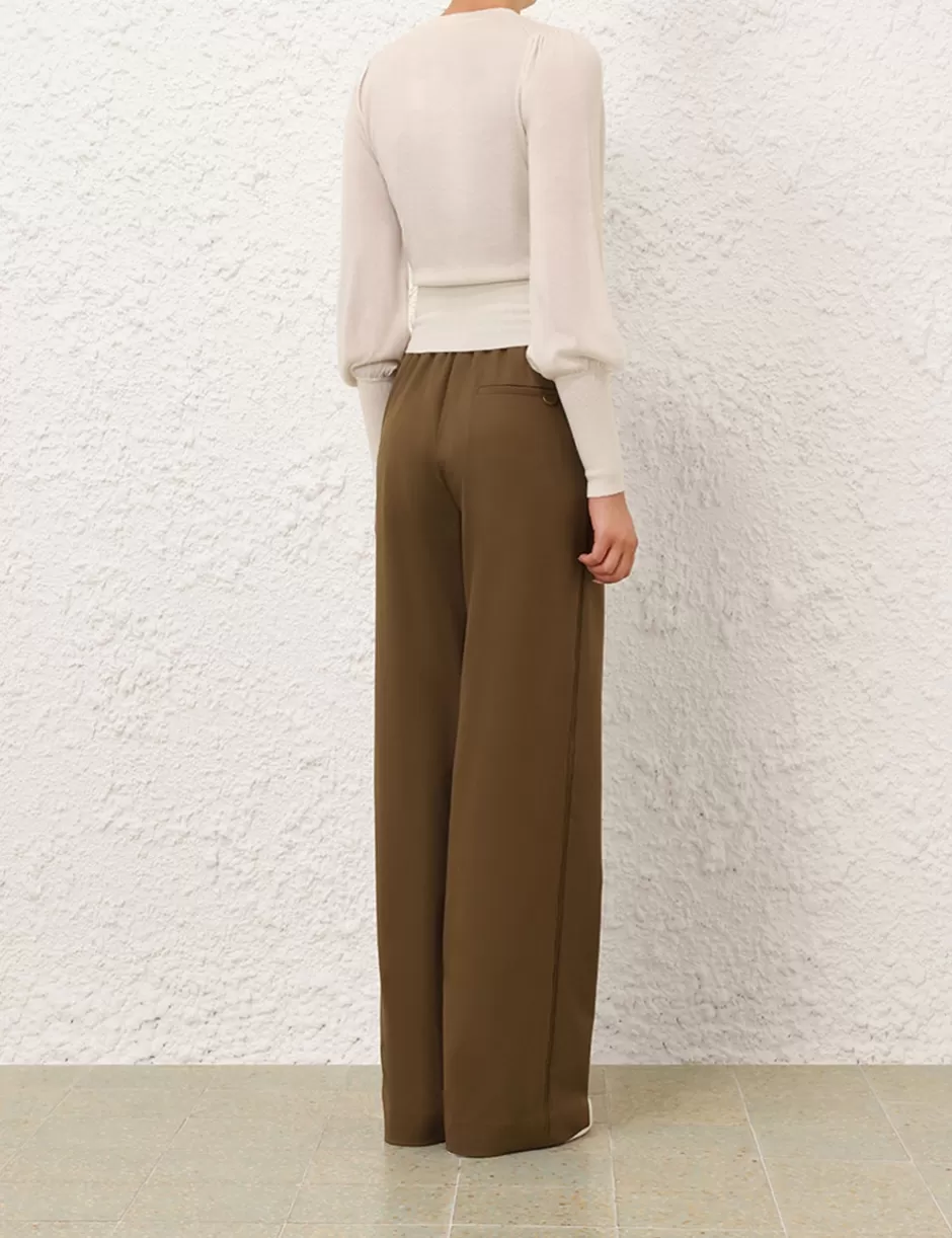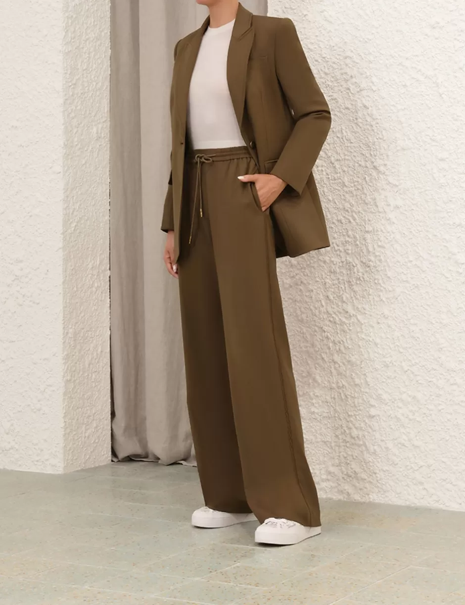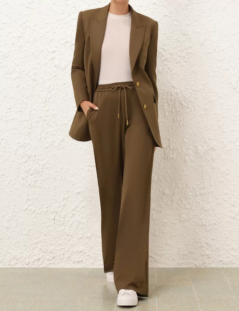 The Crush Track Pant in Olive from our Resort 2025 Collection, Crush. A track pant featuring an elasticated waistband with drawstring with back and side seam pockets.