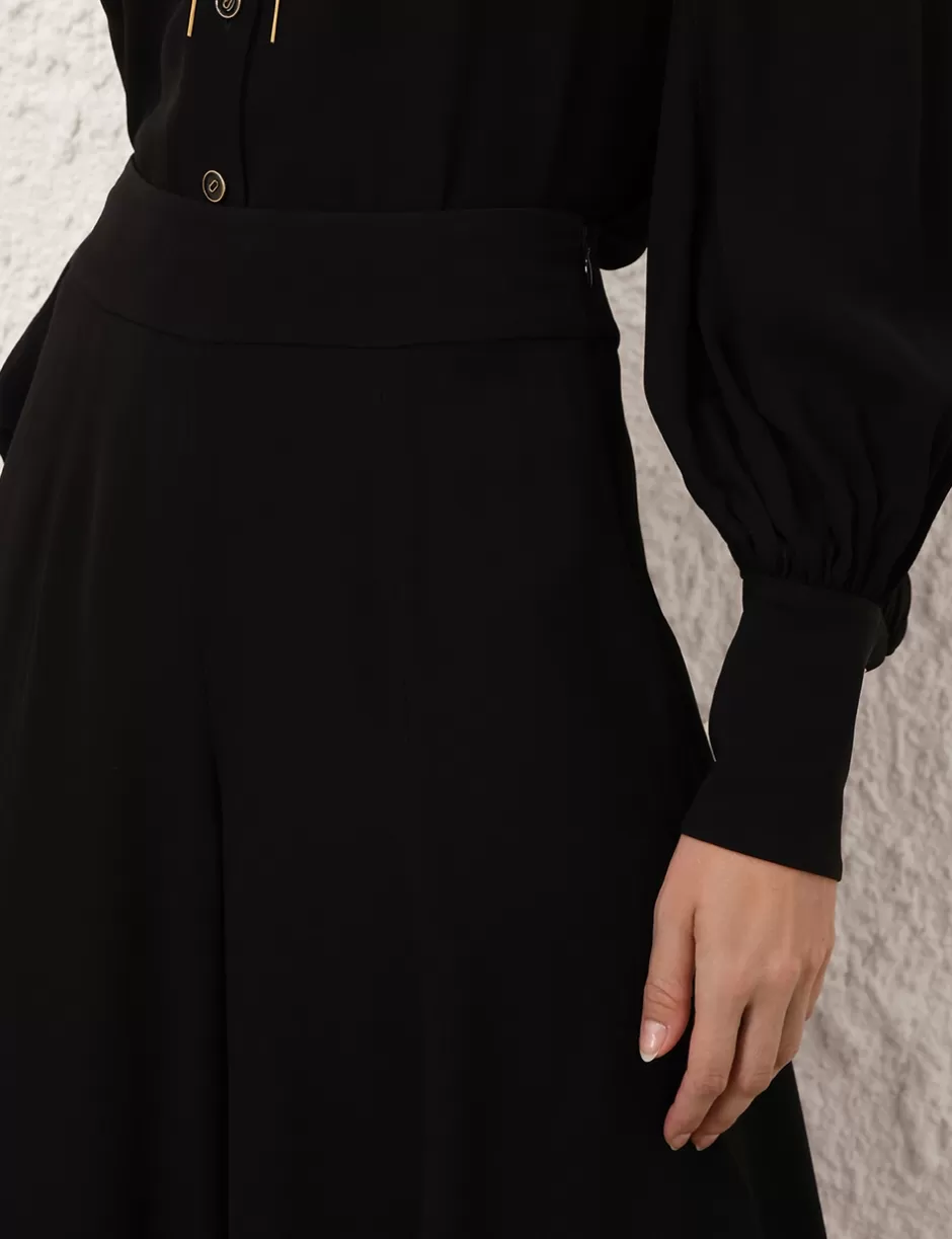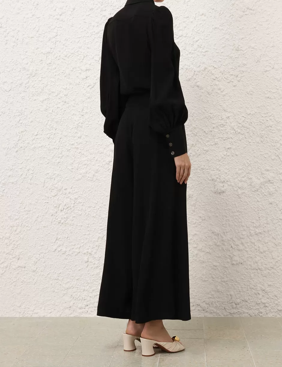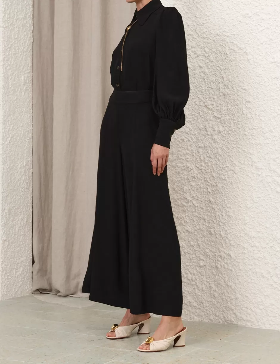 The Culotte in Black from our Resort 2025 Collection, Crush. A wide leg culotte featuring a fitted waistband and side seam zip.
