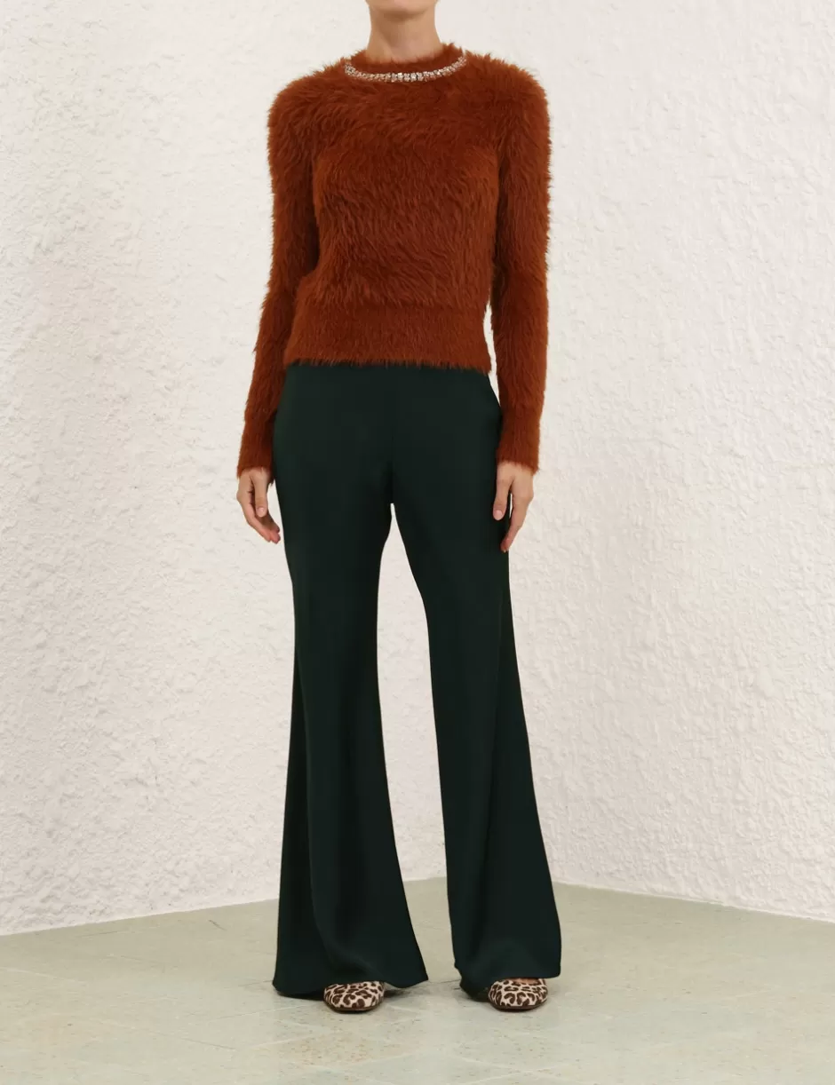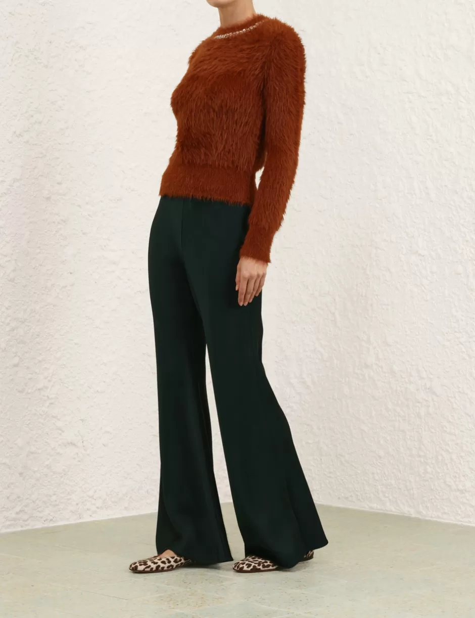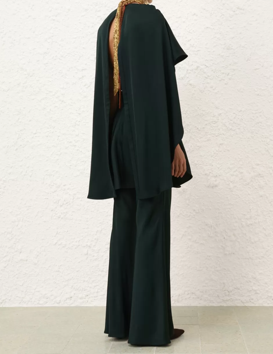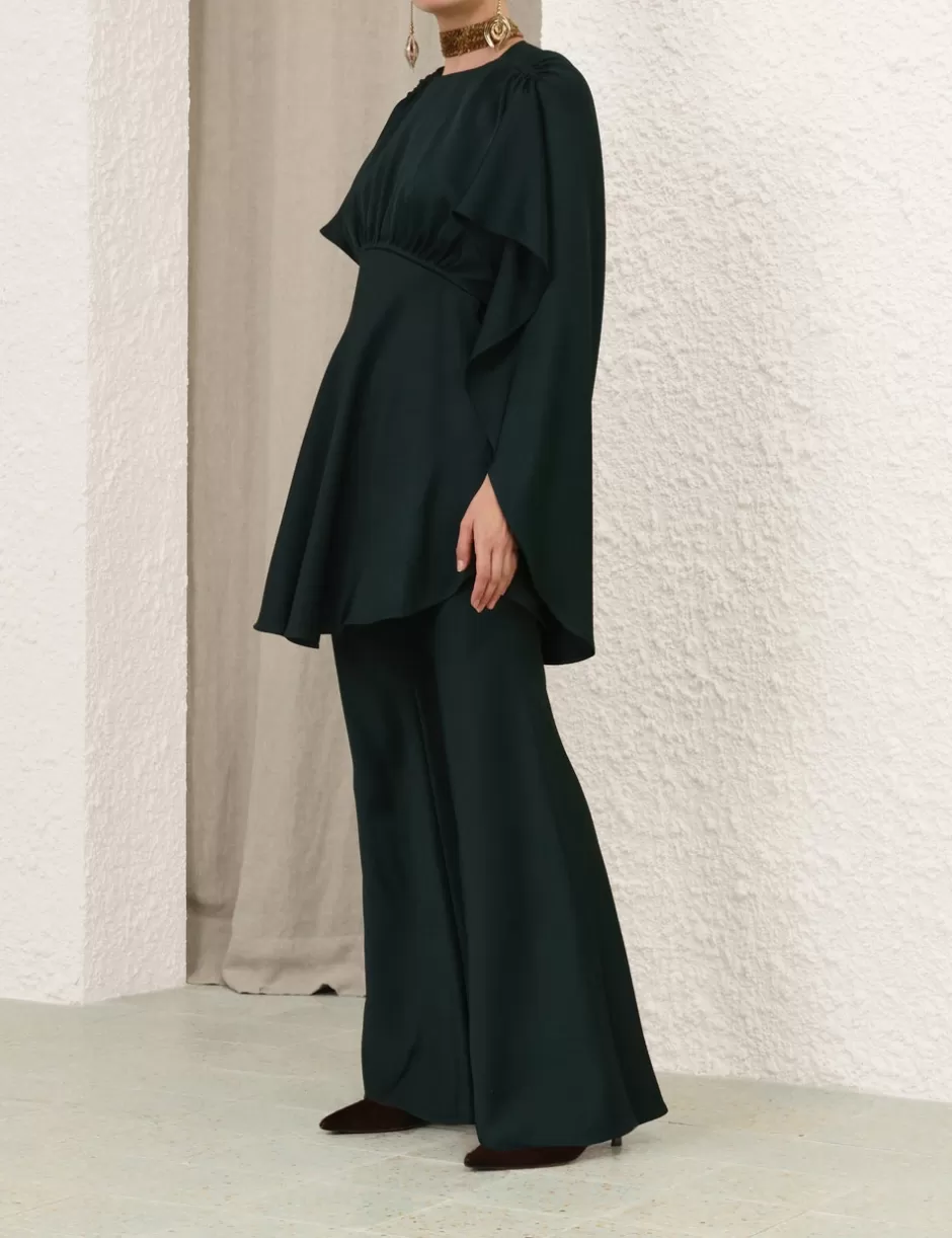 The Eden Slouch Flare Pant in Bottle Green from our Fall 2024 Collection, In Illustration. A wide leg flared pant featur…