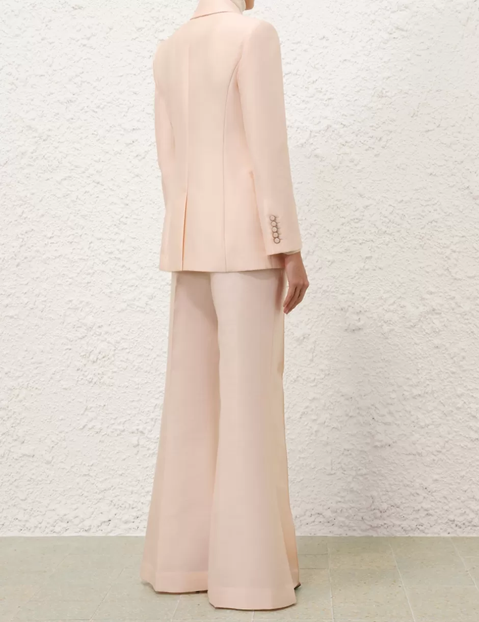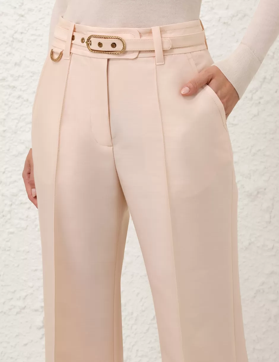 The Eden Wide Leg Pant in Macadamia from our Fall 2024 Collection, In Illustration. A wool silk blend pant featuring a high waist, wide flare silhouette and centre front pintucks with pockets throughout.