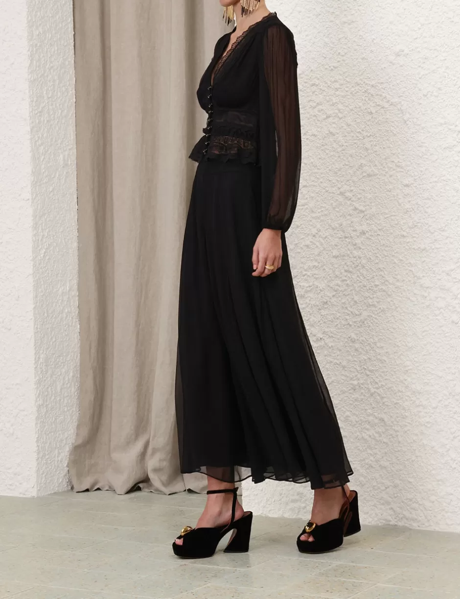 The Illustration Flare Culotte in Black from our Fall 2024 Collection, In Illustration. A culotte pant featuring a relax…