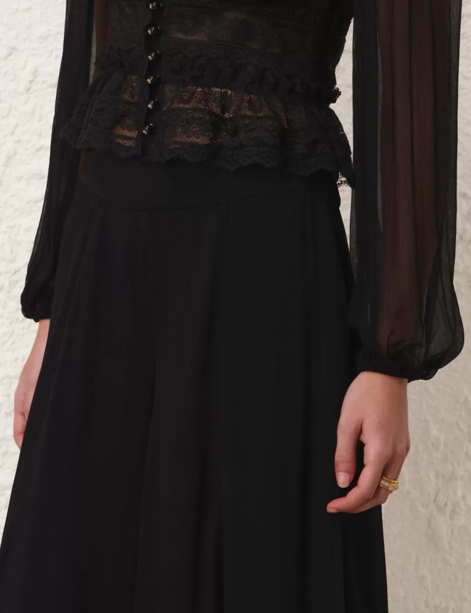 The Illustration Flare Culotte in Black from our Fall 2024 Collection, In Illustration. A culotte pant featuring a relaxed fit and wide leg silhouette.