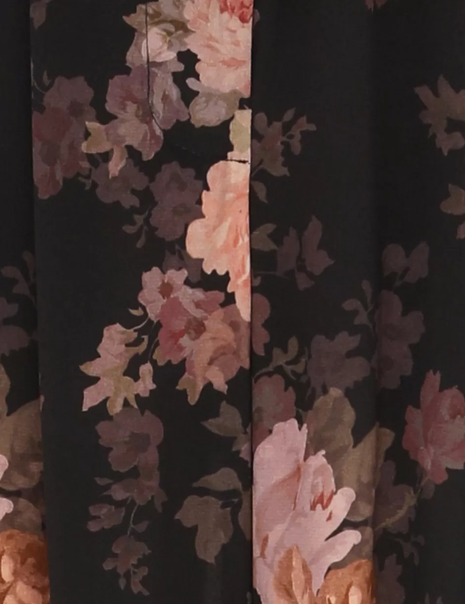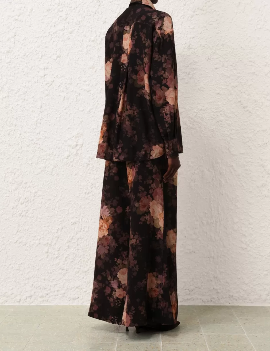 The Illustration Tuck Pant in Black Rococo Floral from our Fall 2024 Collection, In Illustration. A wide leg pant featuring side seam pockets and a self cover buckle belt.