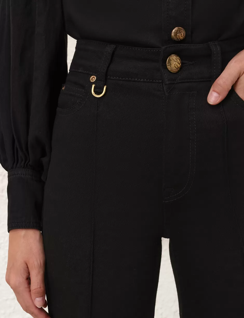 The Illustration Wide Leg Jean in Onyx from our Fall 2024 Collection, In Illustration. A denim jean featuring a wide leg silhouette.