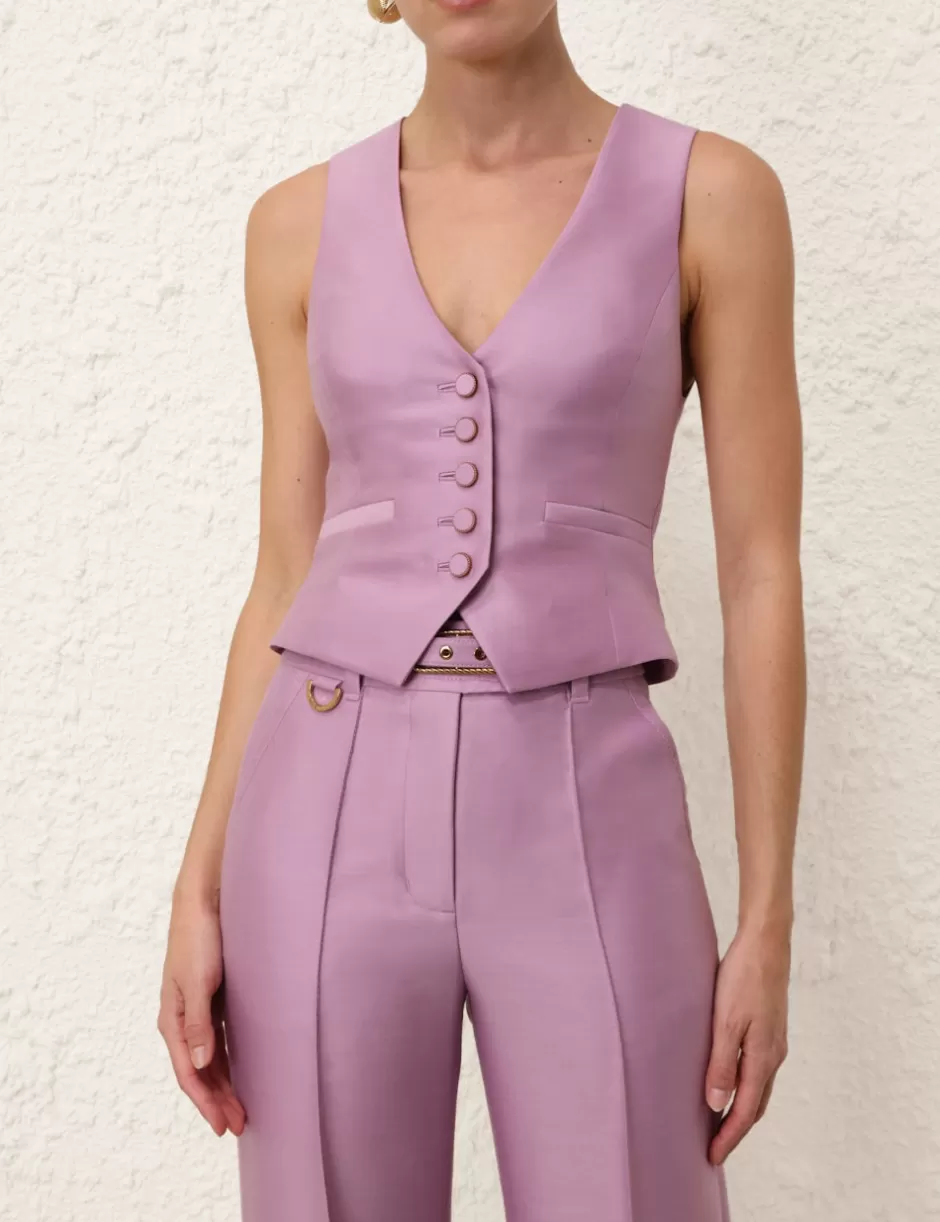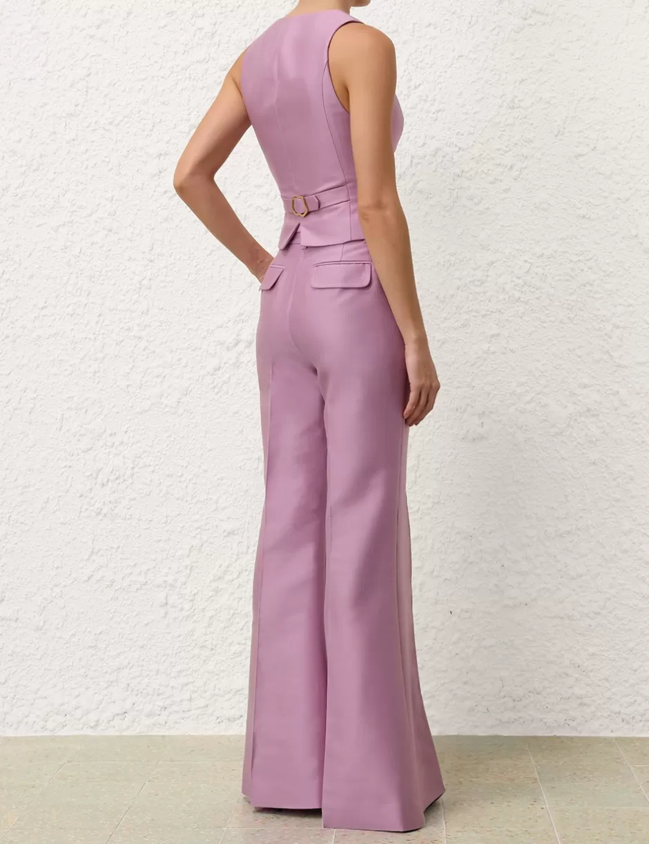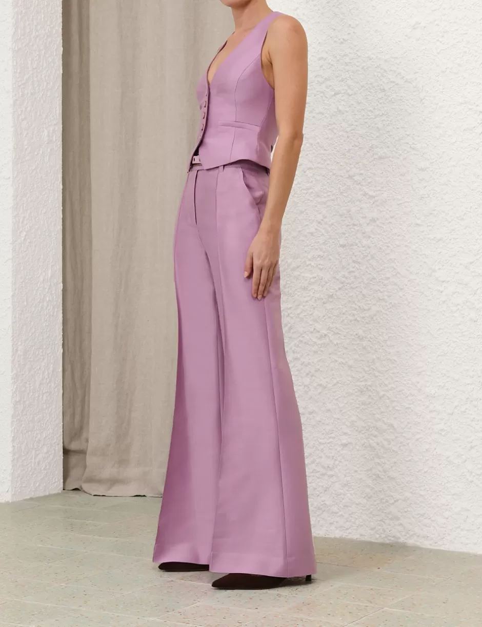 The Illustration Wide Leg Pant in Lilac from our Fall 2024 Collection, In Illustration. A wool blend pant featuring a high waist, wide flare silhouette and centre front pintucks through the legs with pockets throughout.