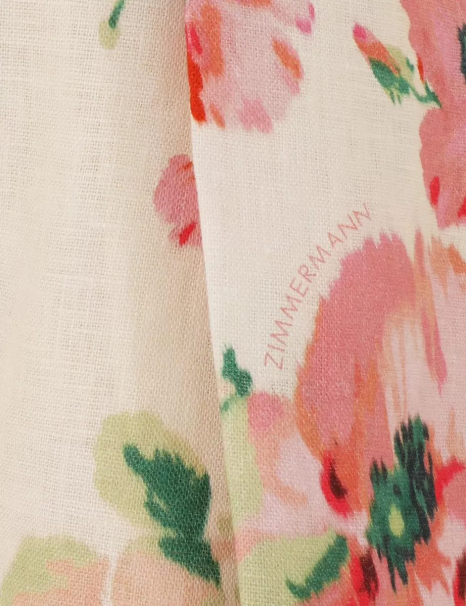 The Lightburst Tuck Short in Cream/Red Floralfrom our Summer Swim 2024 Collection. A high waisted linen short featuring side seam pockets and a raffia trim belt.
