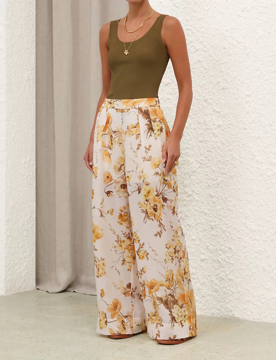 The Ottie Wide Leg Pant in Orange Floral from our Summer Swim 2024 Collection. A ramie printed wide leg pant featuring s…