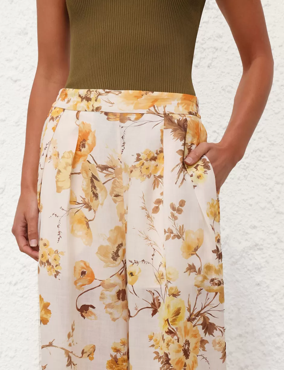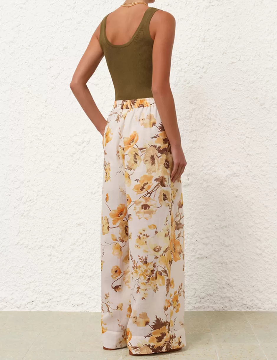 The Ottie Wide Leg Pant in Orange Floral from our Summer Swim 2024 Collection. A ramie printed wide leg pant featuring side pockets and an elasticated back waist.