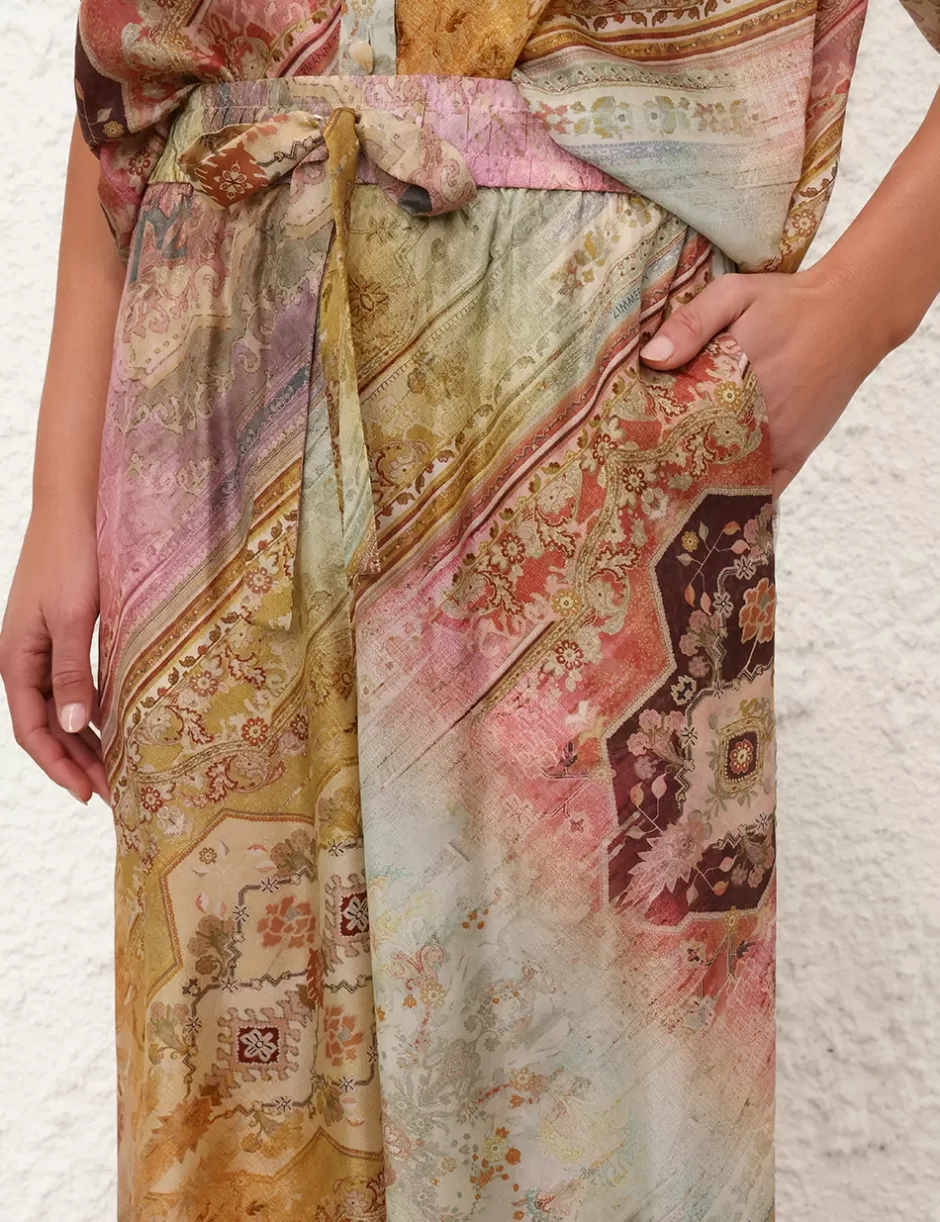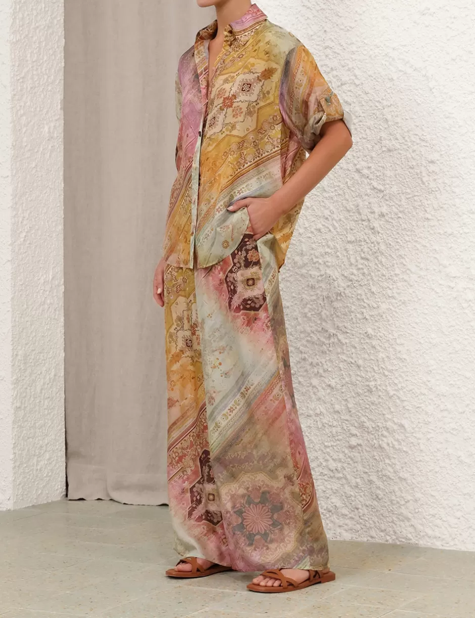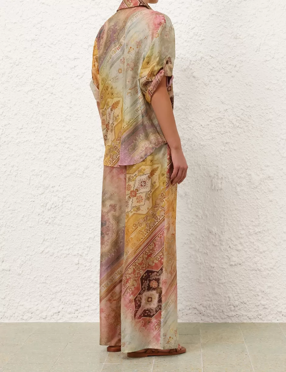 The Tallow Relaxed Pant in Ombre Multi from our Resort Swim 2025 Collection. A silk wide leg pant featuring an elasticated waistband and side seam pockets.