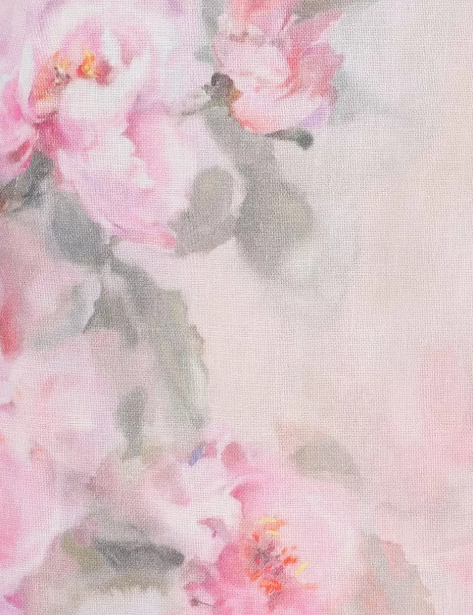 The Crush Scalloped Mini Skirt in Pink Floral from our Resort 2025 Collection, Crush. A linen mini skirt featuring a placement print, centre back zip closure and crystal trims at the hemline and waist.