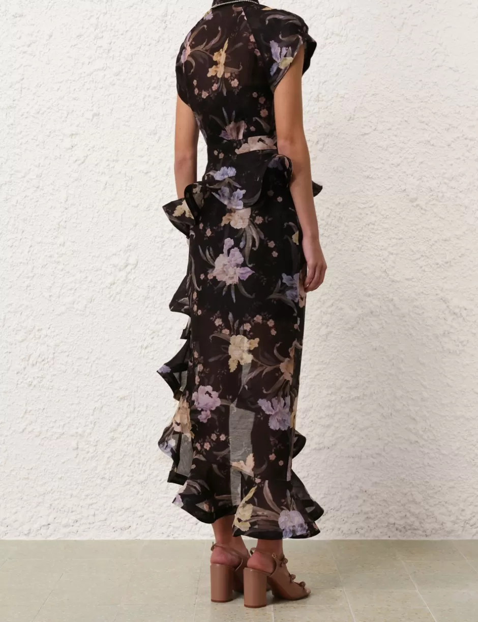 The Eden Waterfall Skirt in Iris Sherbet from our Fall 2024 Collection, In Illustration. A silk linen organza skirt featuring an asymmetric hemline with statement ruffle detailing throughout.