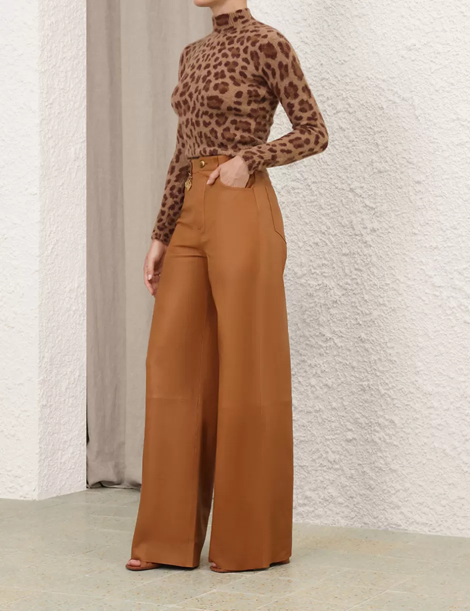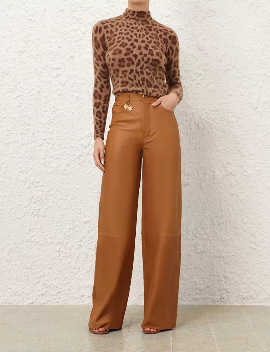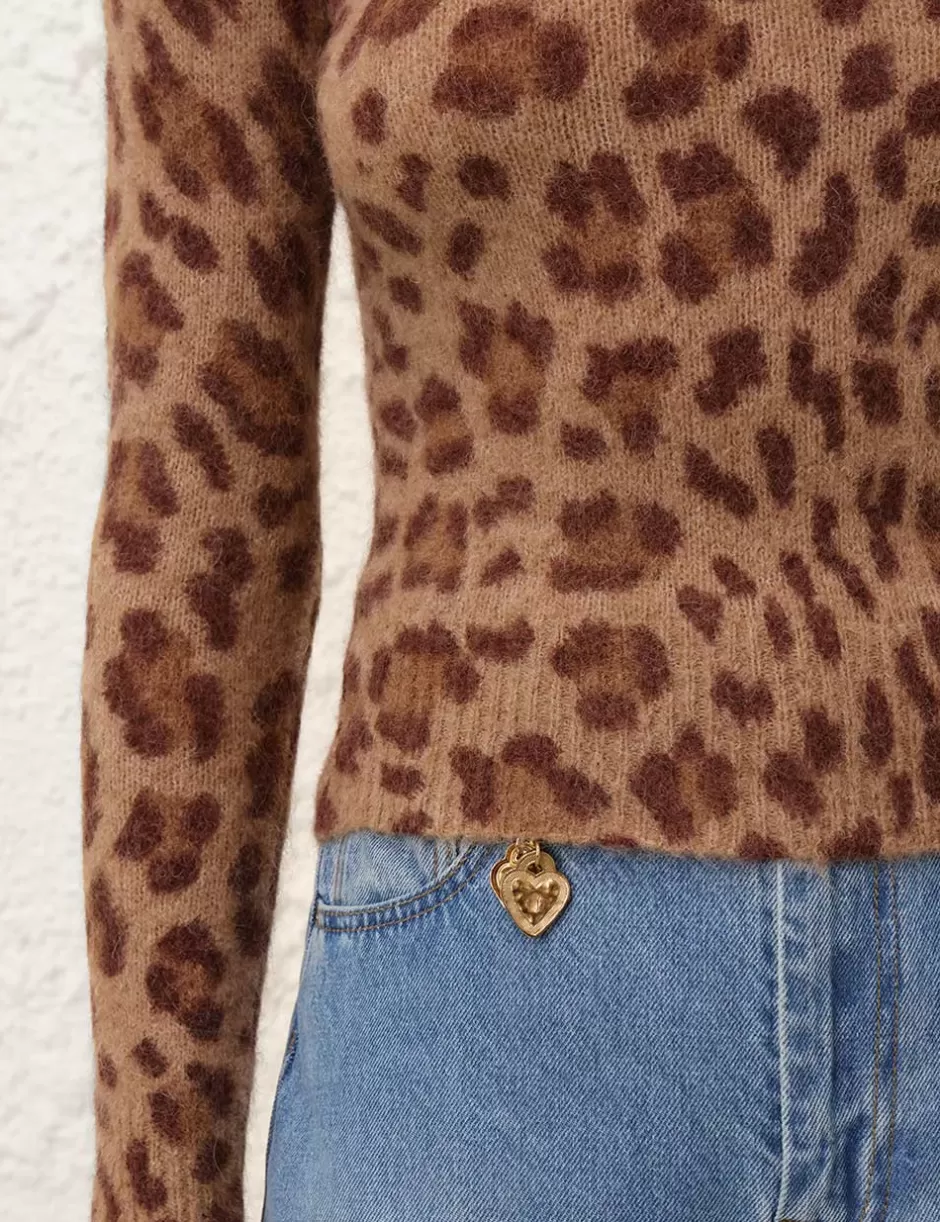 The Crush Printed Sweater in Leopard from our Resort 2025 Collection, Crush. A wool knit sweater featuring a high neck and ribbed edges throughout.