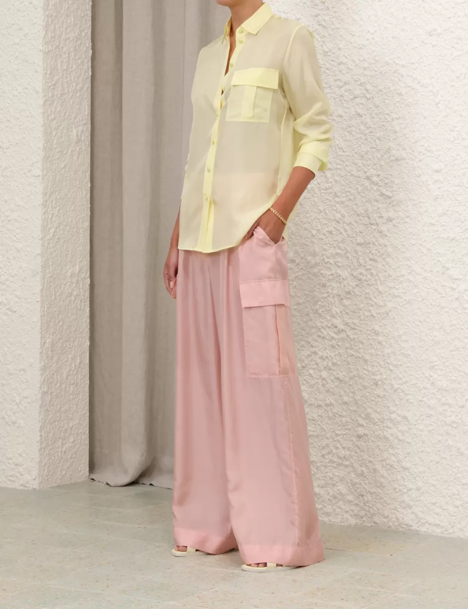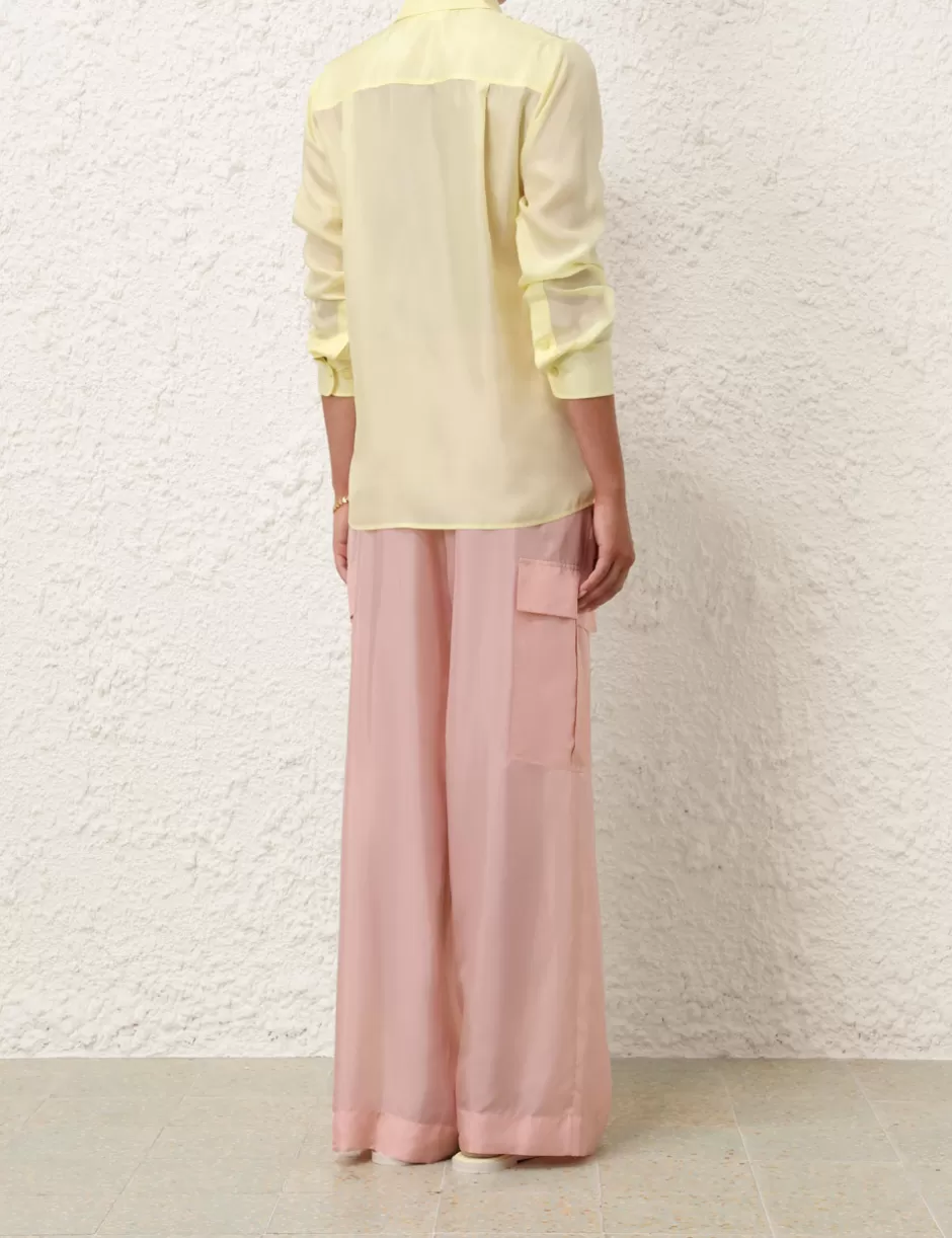 The Halliday Manstyle Shirt in Lemon from our Summer Swim 2024 Collection. A silk long sleeve shirt featuring topstitching throughout.