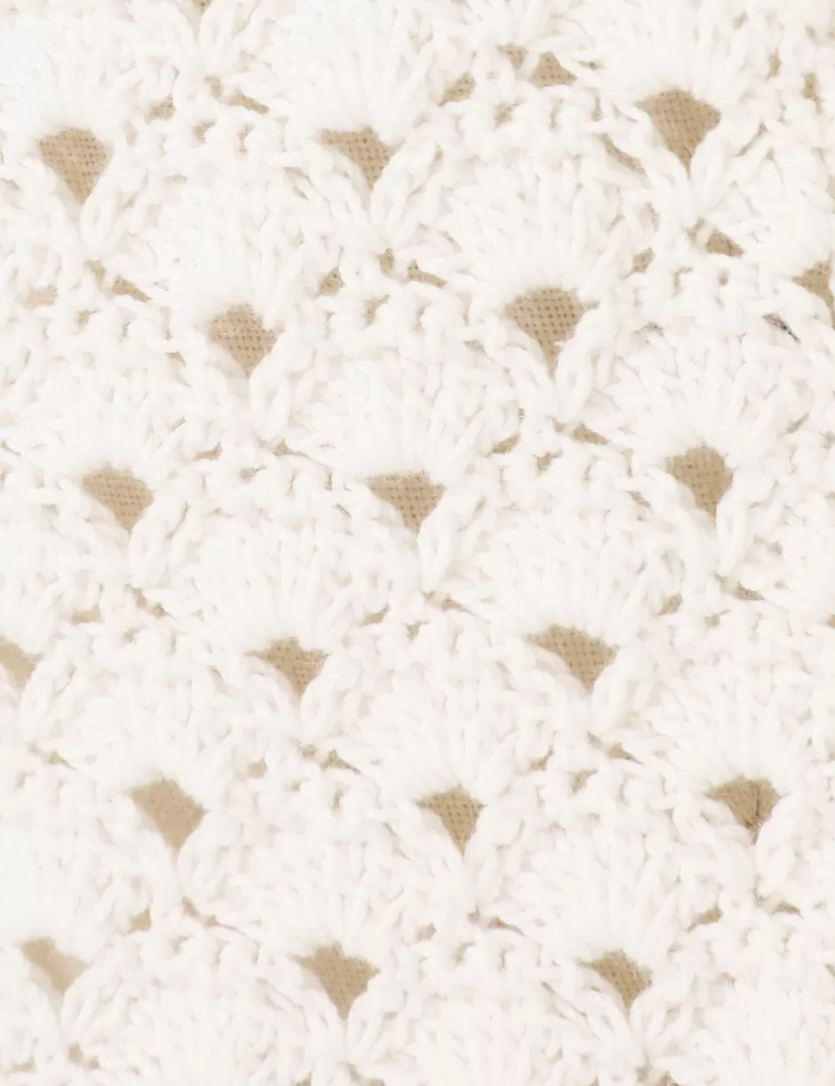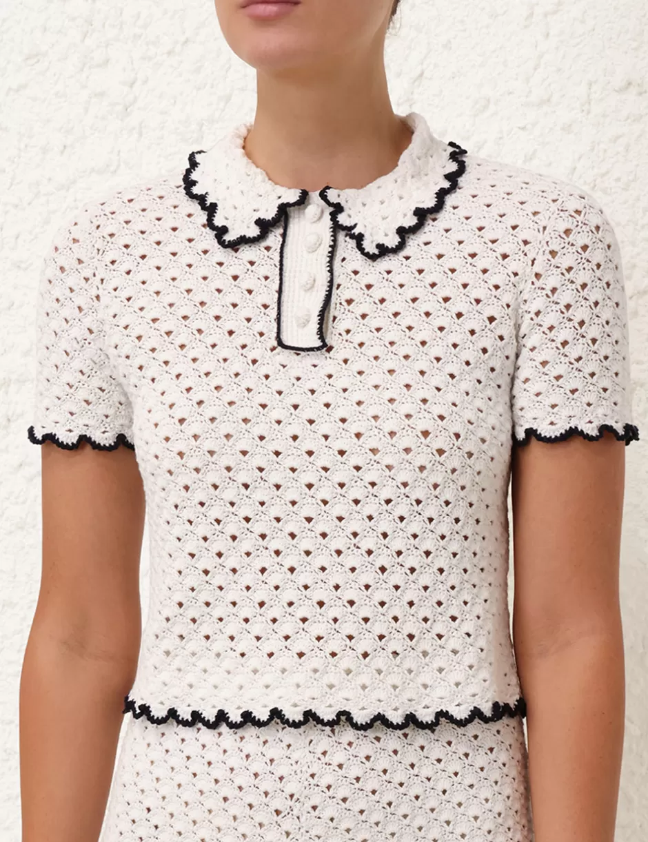 The Halliday Scallop Polo in Black/Ivory from our Summer Swim 2024 Collection. A knitted polo featuring self yarn croche…